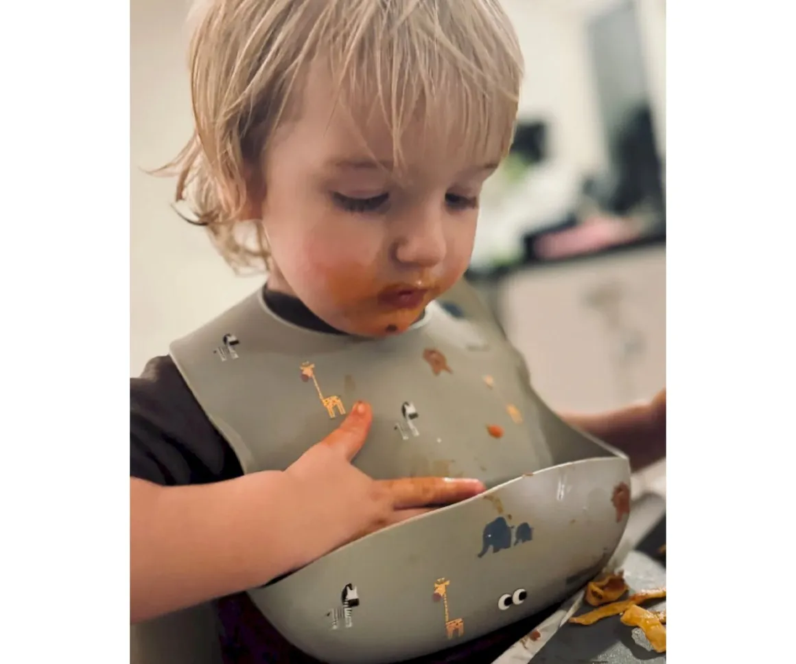 El babero de silicona flexible de la colección Safari de Noui Noui es muy suave y cómodo y tiene una copa extragrande. Es ajustable para que los peques puedan usarlo durante mucho tiempo.