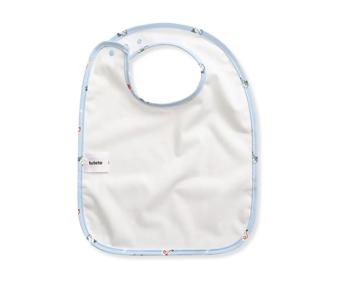 Tutete presenta el babero impermeable con bolsillo recogemigas que será compañero ideal para comidas más divertidas y sin preocupaciones. Diseñado pensando en la comodidad de los más pequeños y la tranquilidad de los papás, está confeccionado en una resistente mezcla de PU y poliéster, materiales duraderos y fáciles de limpiar.