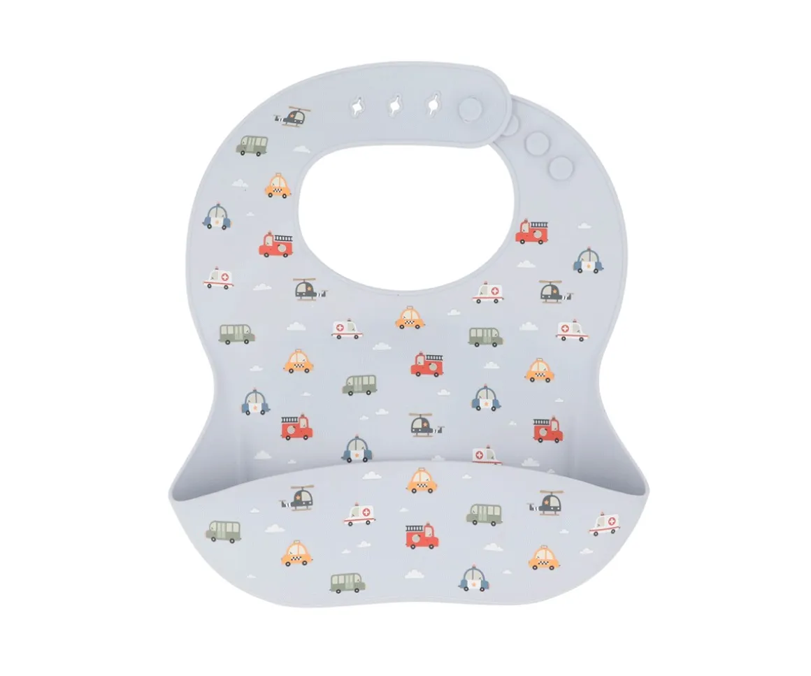 Babero de silicona para bebé de la Colección City Cars de Tutete.