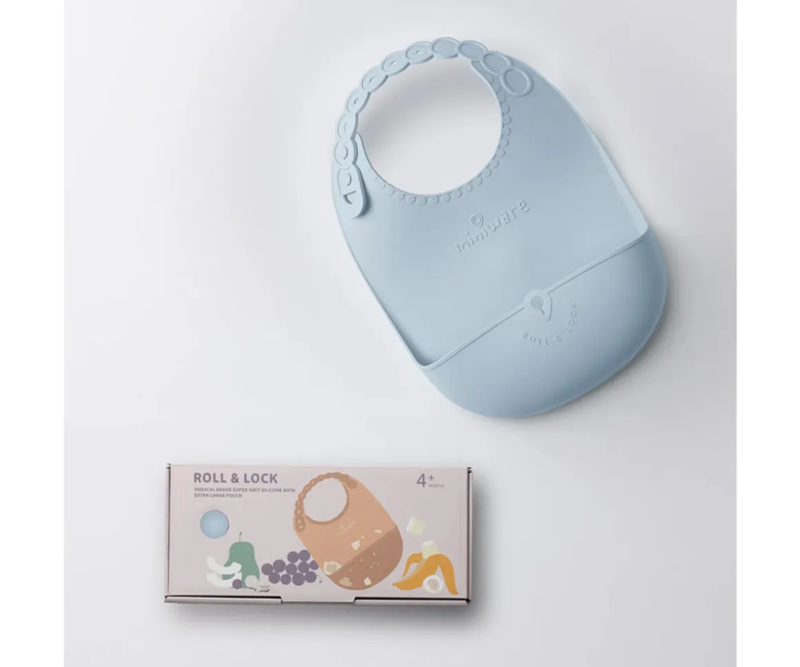 El Roll & Lock Silicone Bib de Miniware es el babero perfecto para acompañar a tu bebé en sus primeras experiencias de autoalimentación. Fabricado en silicona de grado alimentario, es suave, flexible y extremadamente cómodo, ideal para usar a diario tanto en casa como fuera de ella.