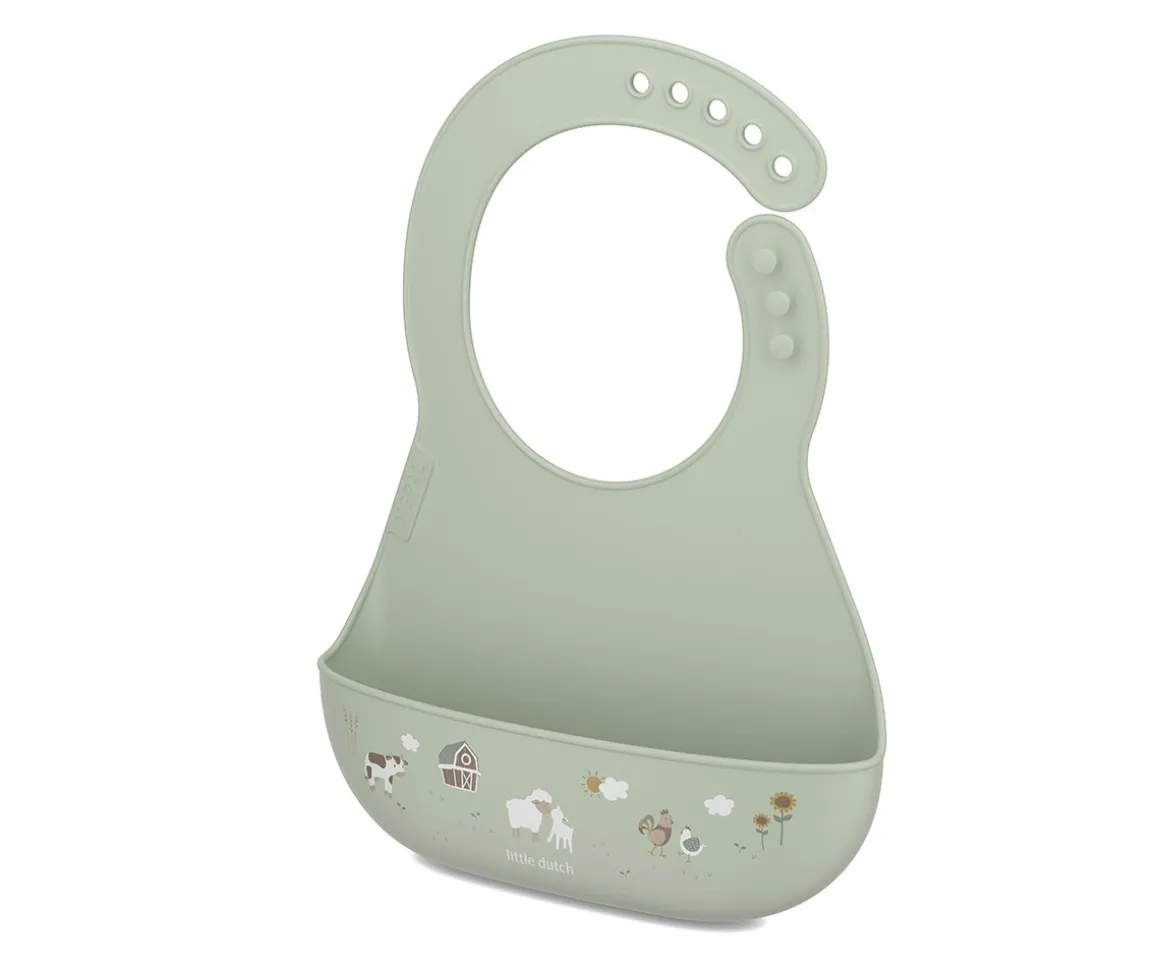 El babero de silicona flexible de la colección Mepal Little Farm es muy suave y cómodo, tiene un amplio bolsillo abierto recogemigas. Es ajustable para que los peques puedan usarlo durante mucho tiempo.