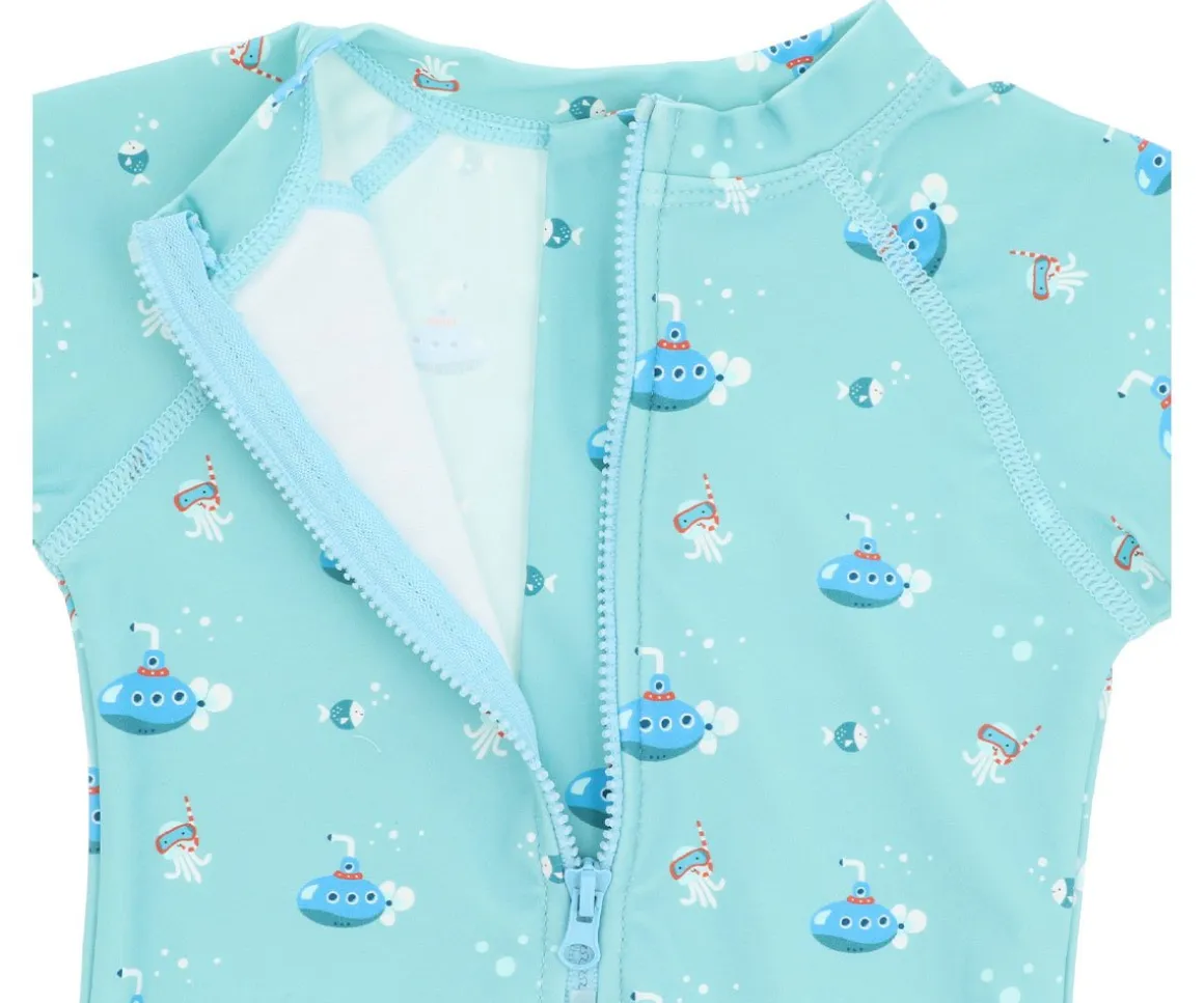 Bañador con cremallera delantera de la colección Submarine de Monnëka que ha sido creado con una tela especial que protege a la piel de los rayos solares