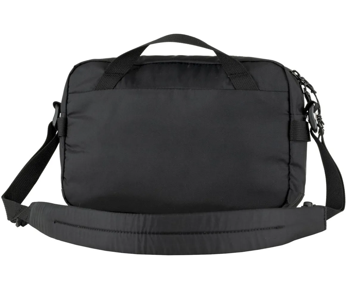 La bandolera High Coast de la marca Fjallraven cuenta con correa cruzada, acolchada y ajustable que se puede quitar y así usarla como neceser, un bolsillo frontal con cremallera y un bolsillo interior con gancho para llaves.