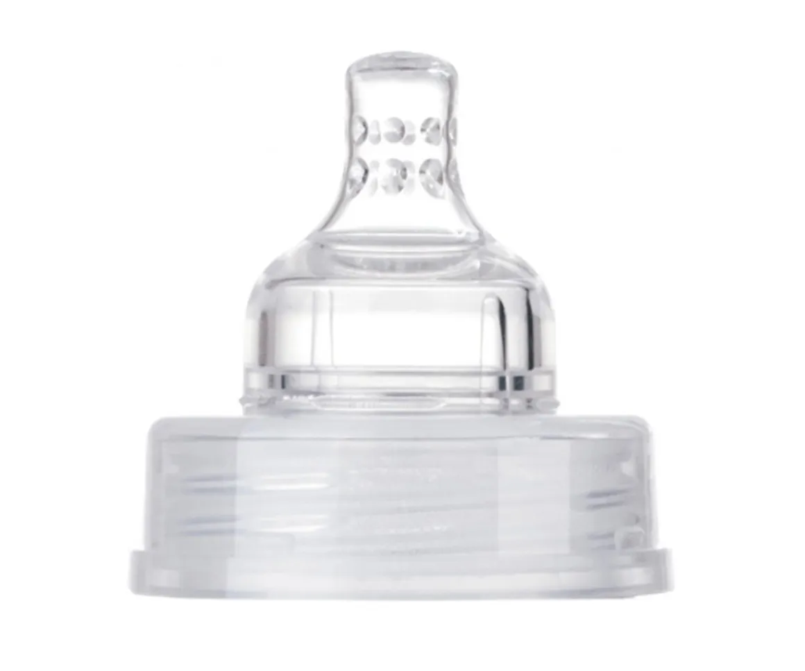- Punta suave y dinámica. Fabricada con una fina capa de silicona. Se alarga y se retrae como el pezón de la madre, según el ritmo natural de succión