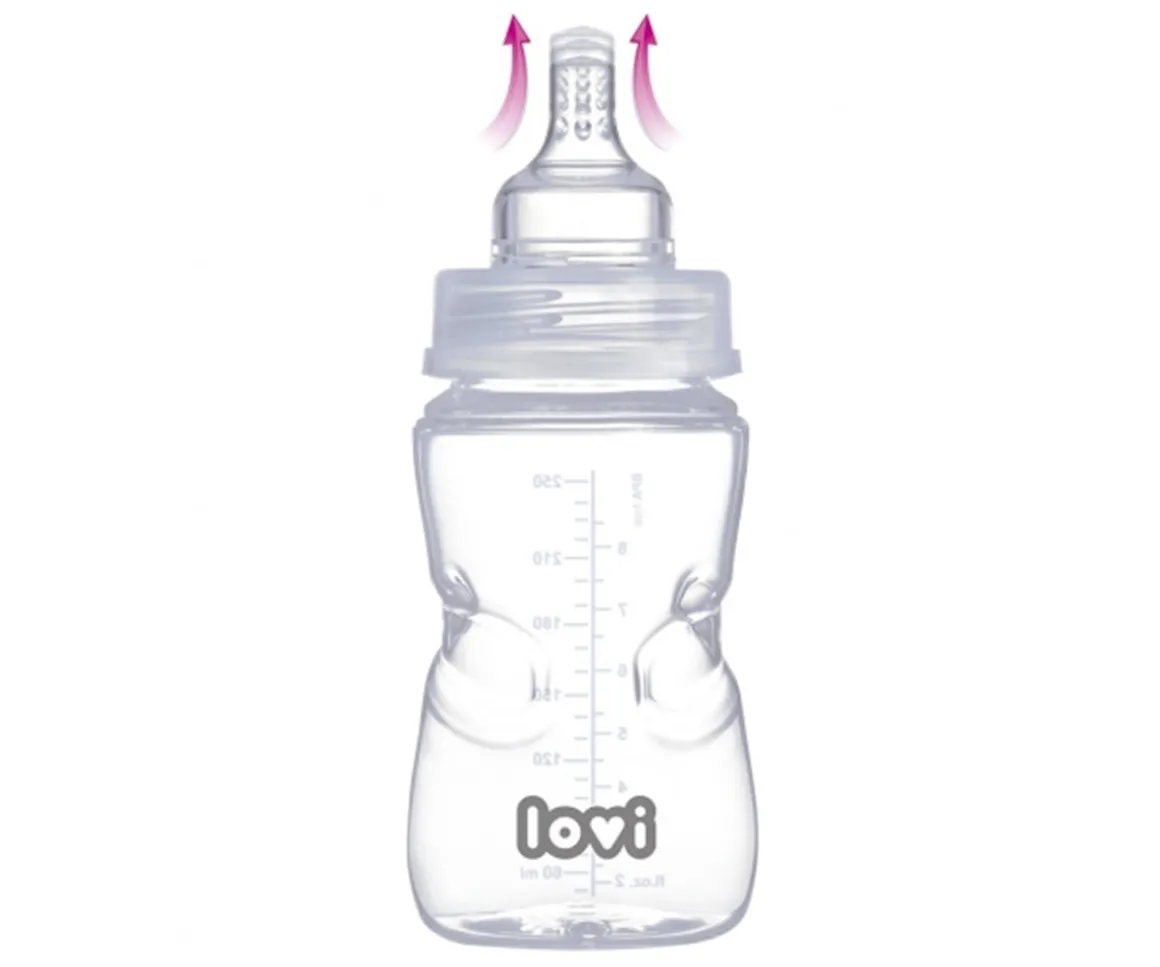 Equipado con tetina dinámica Super Vent, con conductos internos que regulan el flujo de la leche y la presión en la tetina.