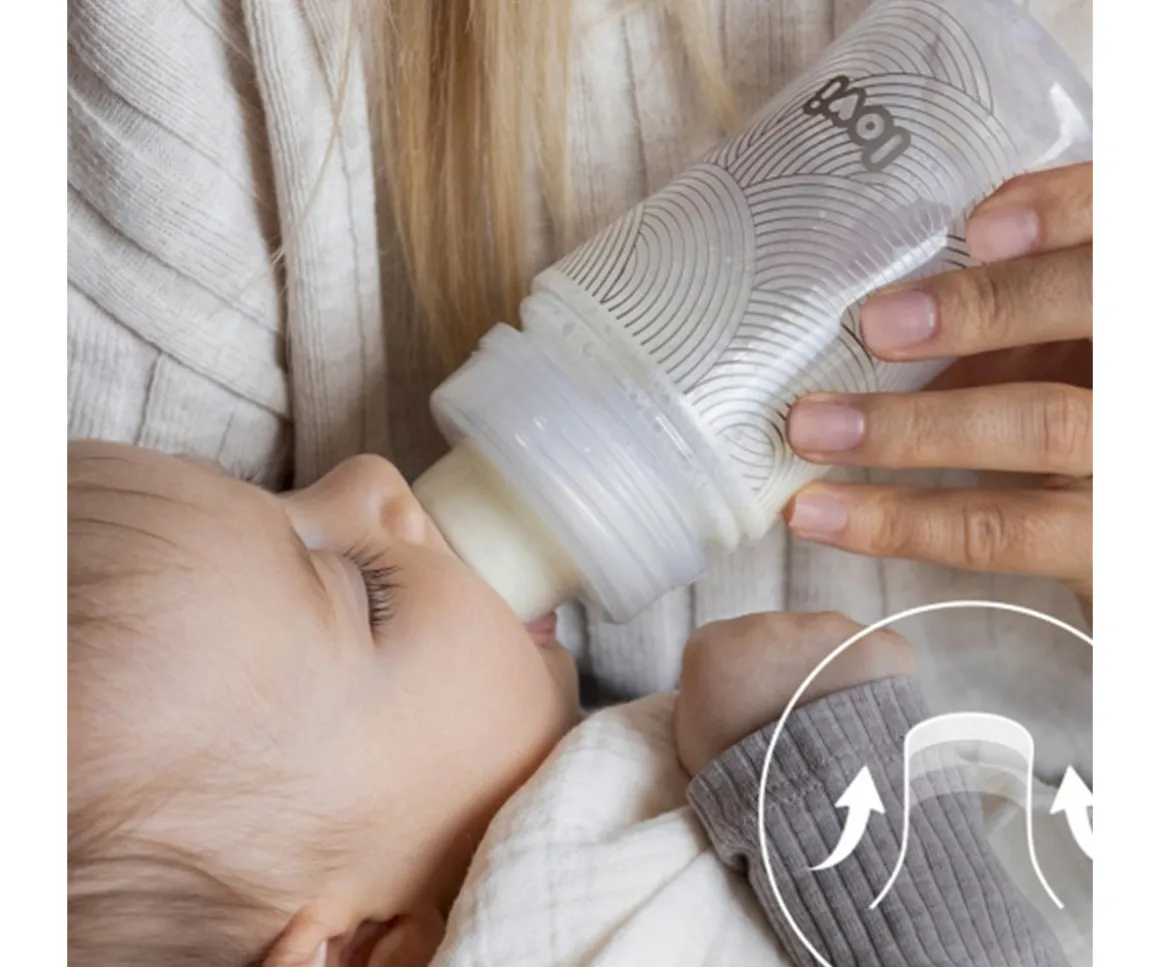 Biberón seguro para un bebé amamantado porque no altera el reflejo de succión y no interfiere con la alimentación natural.