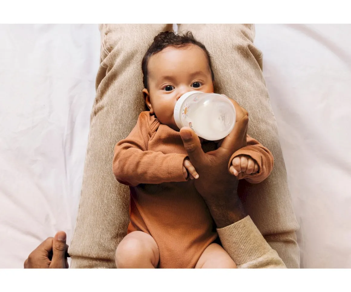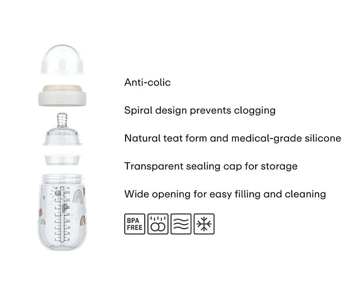 Biberón de la colección Mio Fairy Garden de Mepal. Está especialmente diseñado para evitar cólicos y tiene diseño de tetina en espiral para prevenir el bloqueo.