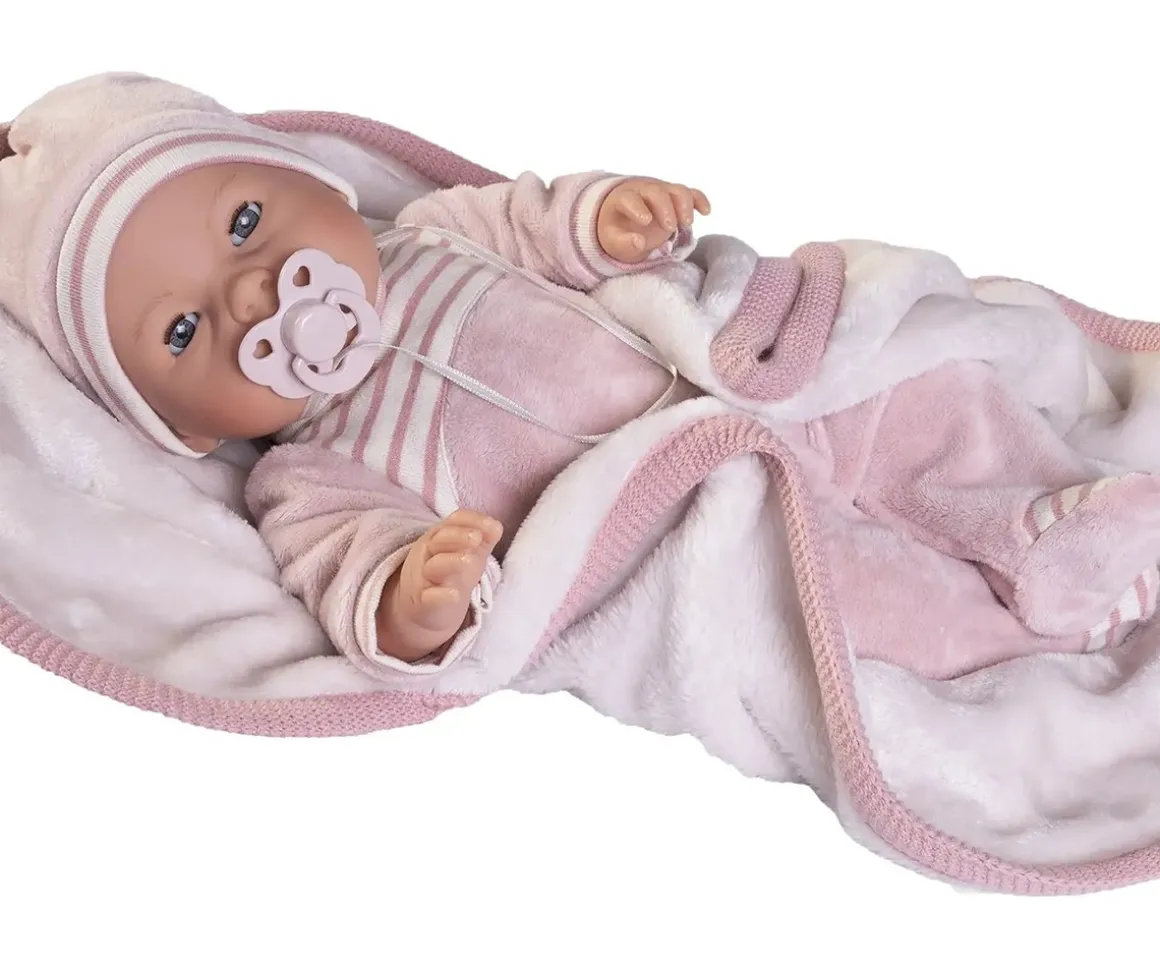 - Incluye: Muñeca Bimba, pijama, gorrito, manta y chupete con cinta