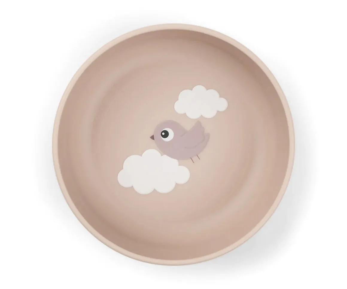 Mini bol perfecto para los más peques de la casa con un divertido motivo del pajarito Birdee y nubes. Incluye una práctica base antideslizante que asegura que el bol permanezca en su lugar durante la comida.