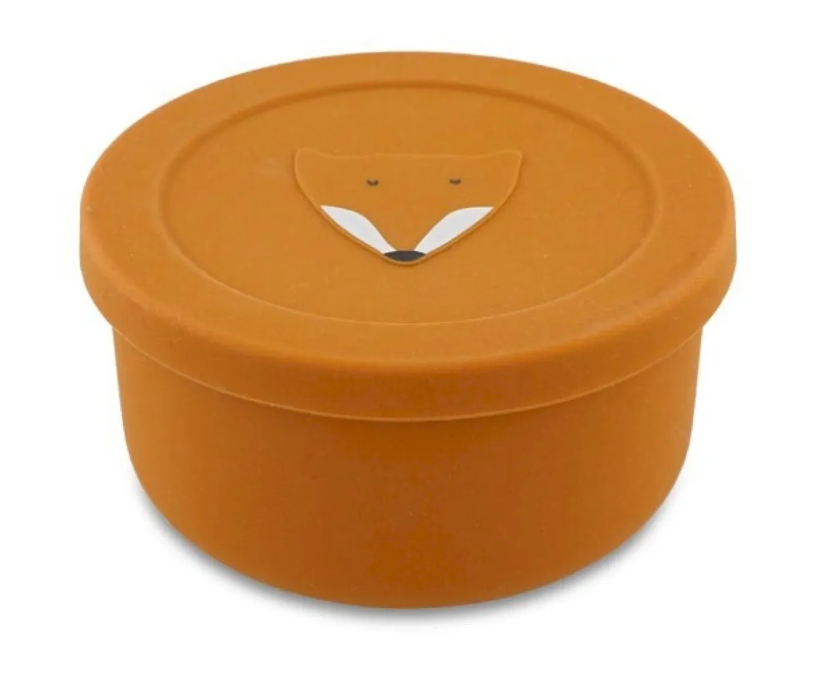 Cuenco con tapa de silicona de la colección Mr.Fox de Trixie, diseñado para durar y resistir golpes. La tapa proporciona comodidad al transportar alimentos.