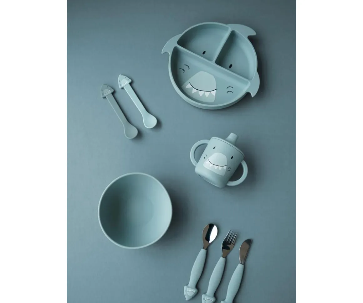 El bol de silicona Mr. Shark de Trixie incluye una ventosa que se adhiere firmemente a superficies lisas.