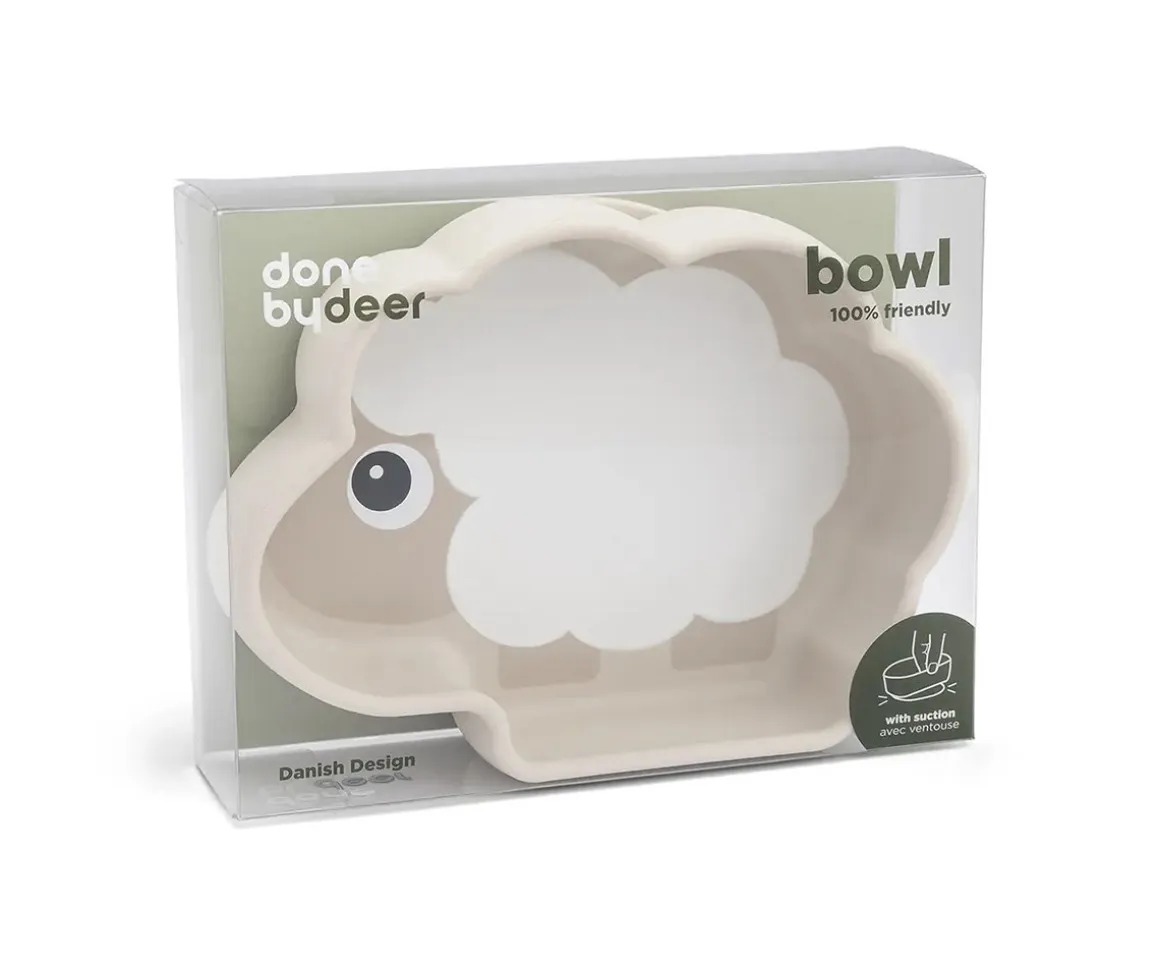 Descubre el bol de silicona para alimentos de la adorable oveja Stick&Stay en color sand de Done by Deer, seguro, funcional y con estilo.