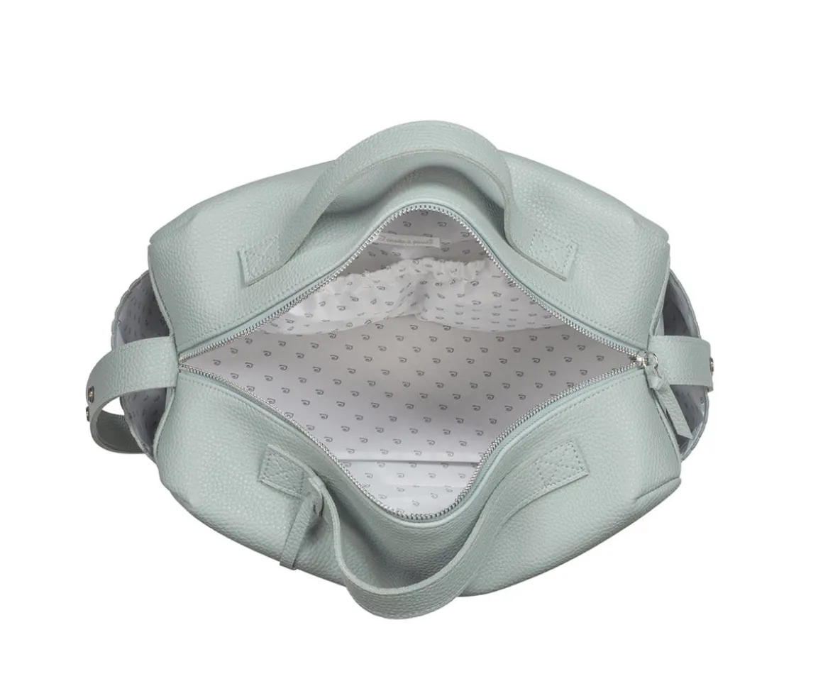 Confeccionada con ecopiel, esta bolsa ofrece una gran capacidad para llevar todos los artículos esenciales de tu bebé cuando estás fuera de casa. Su diseño versátil incluye asas cortas de mano y asa larga para llevar al hombro o en el cochecito.