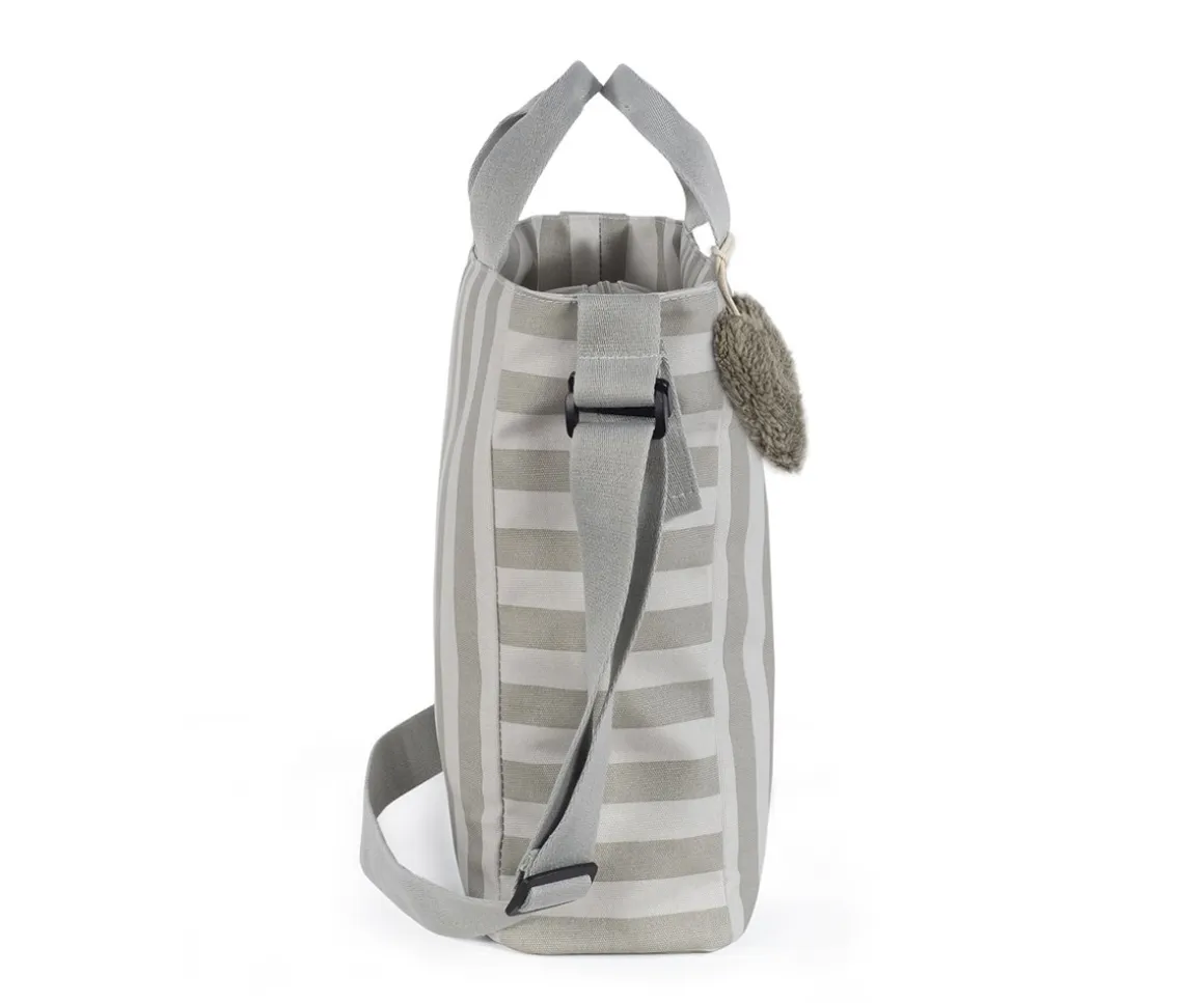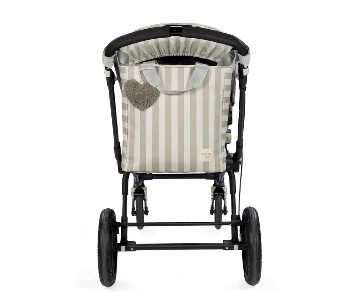 El bolso cambiador de Walking Mum con estampado de rayas, es ligero, resistente y de gran capacidad. Incluye cambiador para bebé y múltiples bolsillos: térmico para biberones, plastificado para ropa húmeda y otros de fácil acceso. Su sistema de sujeción universal y sus asas lo hacen práctico para cualquier silla de paseo. Ideal para tener todo lo necesario del bebé organizado durante los paseos.