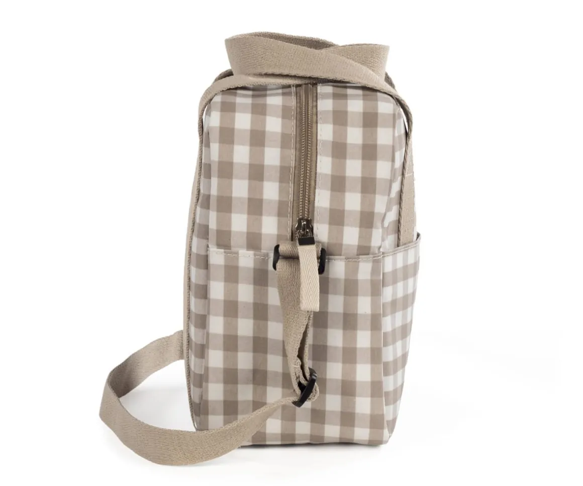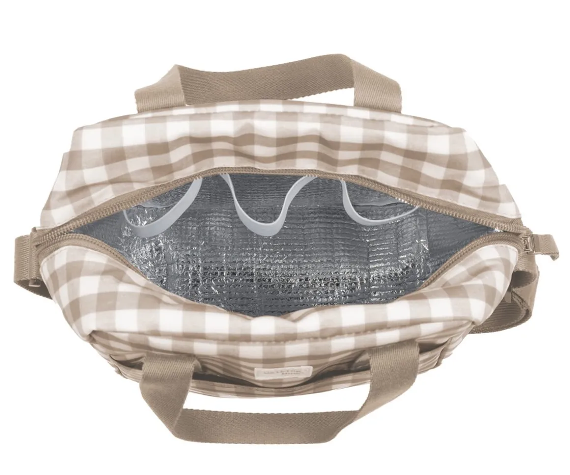 Bolsa térmica con diseño vichy de la colección Caetana Sand de Walking Mum, para biberones o para llevar la comida y almuerzo del peque al parque, al colegio o de viaje.