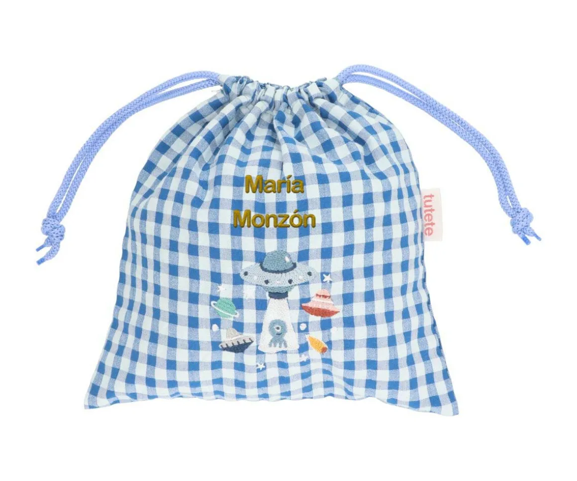 Bolsa merienda de nueva colección, con los diseños exclusivos de Tutete bordados. Es irresistible para llevar el almuerzo al cole.
