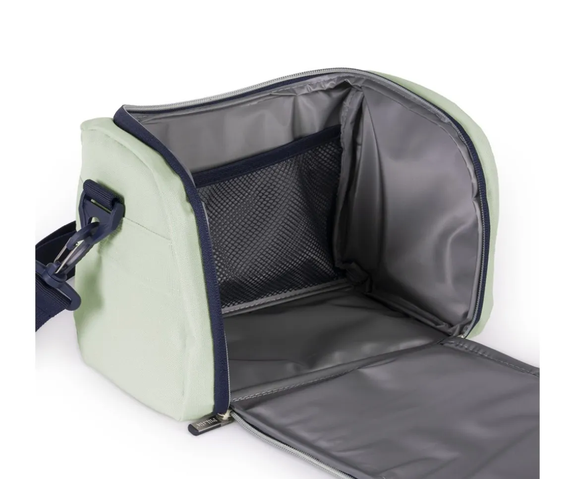 Bolsa térmica porta alimentos con capacidad de 5 litros. Su interior mantiene la temperatura de los alimentos y cuenta con una apertura total que facilita el acceso y la limpieza. Está fabricado en tejido «ripstop», ligero, resistente a roturas y desgarros, gracias a su estructura con hilos gruesos de refuerzo con un patrón entrecruzado.