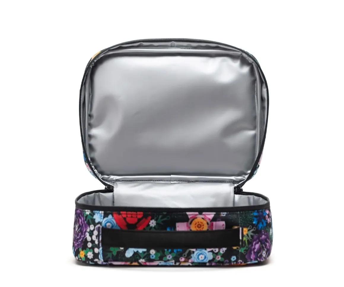 Con fácil apertura de cremallera doble y asa para transportarla, esta bonita bolsa incluye un compartimento exterior lateral cerrado con cremallera para guardar los cubiertos o accesorios y que no se pierdan.