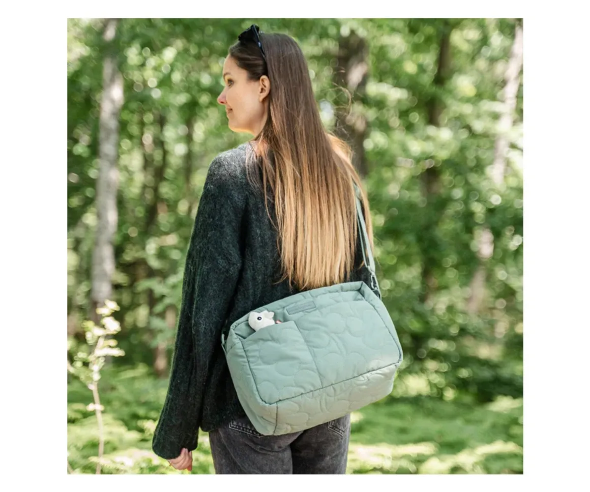 El bolso acolchado para cochecito de Done by Deer es el accesorio ideal para las salidas con tu bebé. Ligero, funcional y con un diseño fresco en color verde con estampado de trébol, está pensado para que lleves todo lo necesario: pañales, toallitas, un snack y ese pequeño juguete que siempre salva el día.