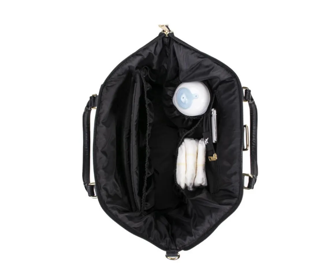 Su interior es amplio y bien organizado, perfecto para guardar pañales, ropa de cambio, biberones, comida y todo tipo de accesorios infantiles. Además, cuenta con espacio adicional para tus imprescindibles del día a día: teléfono, cartera, llaves y pequeños objetos personales, manteniéndolos siempre a mano.