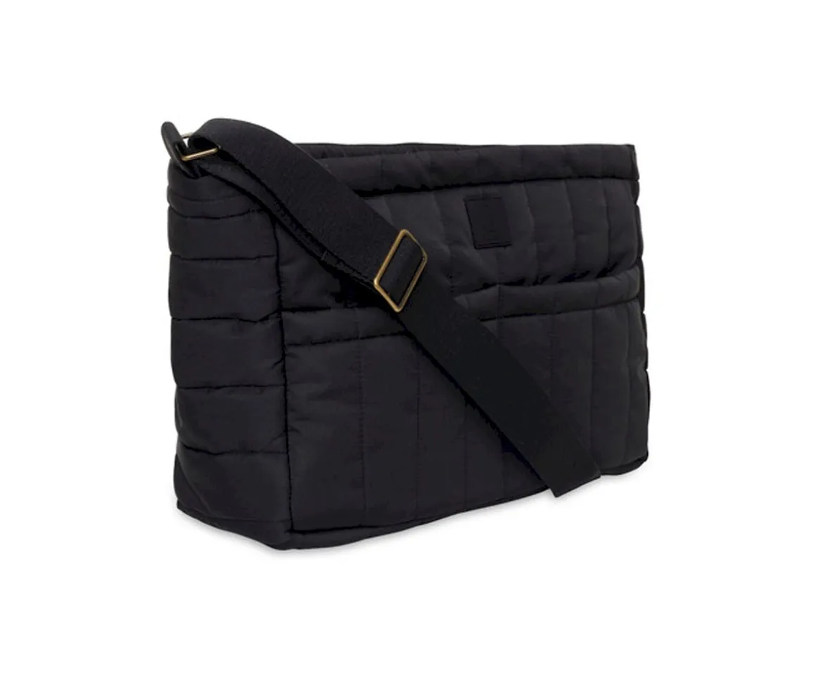 Organizador Jollein en color negro para silla de paseo con un diseño moderno y elegante. Este bolso organizador es abullonado con compartimentos elásticos internos y dos bolsillos en el exterior para un almacenamiento y fácil acceso.