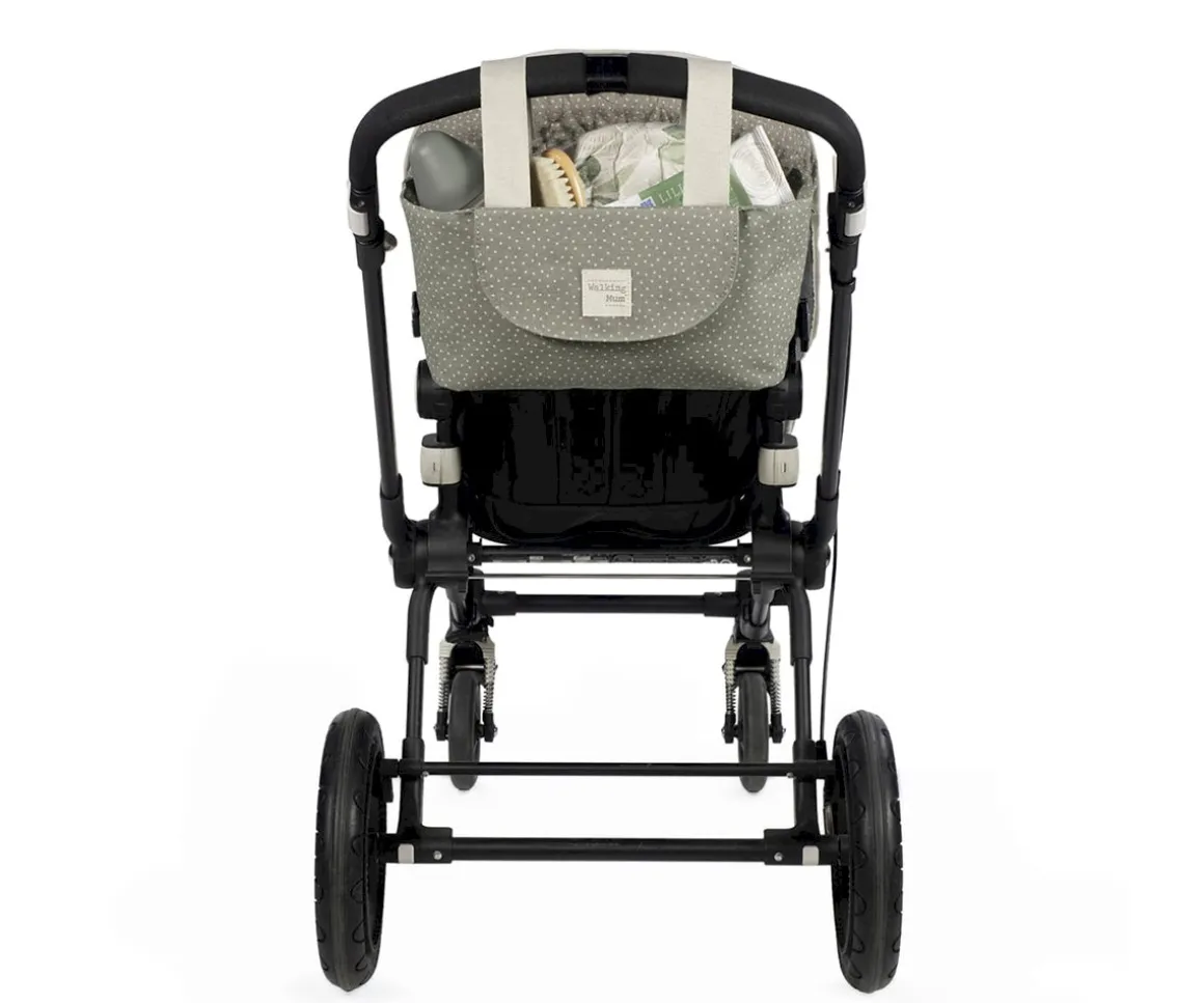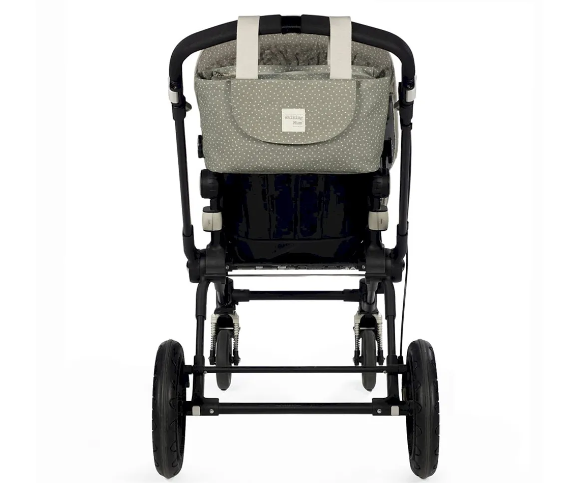 El bolso organizador con diseño de lunares Poppy Moss de Walking Mum, está pensado para cualquier silla de paseo y es un bolso, muy resistente y espacioso para llevar todo lo que necesitas cuando salgas de paseo con tu peque.
