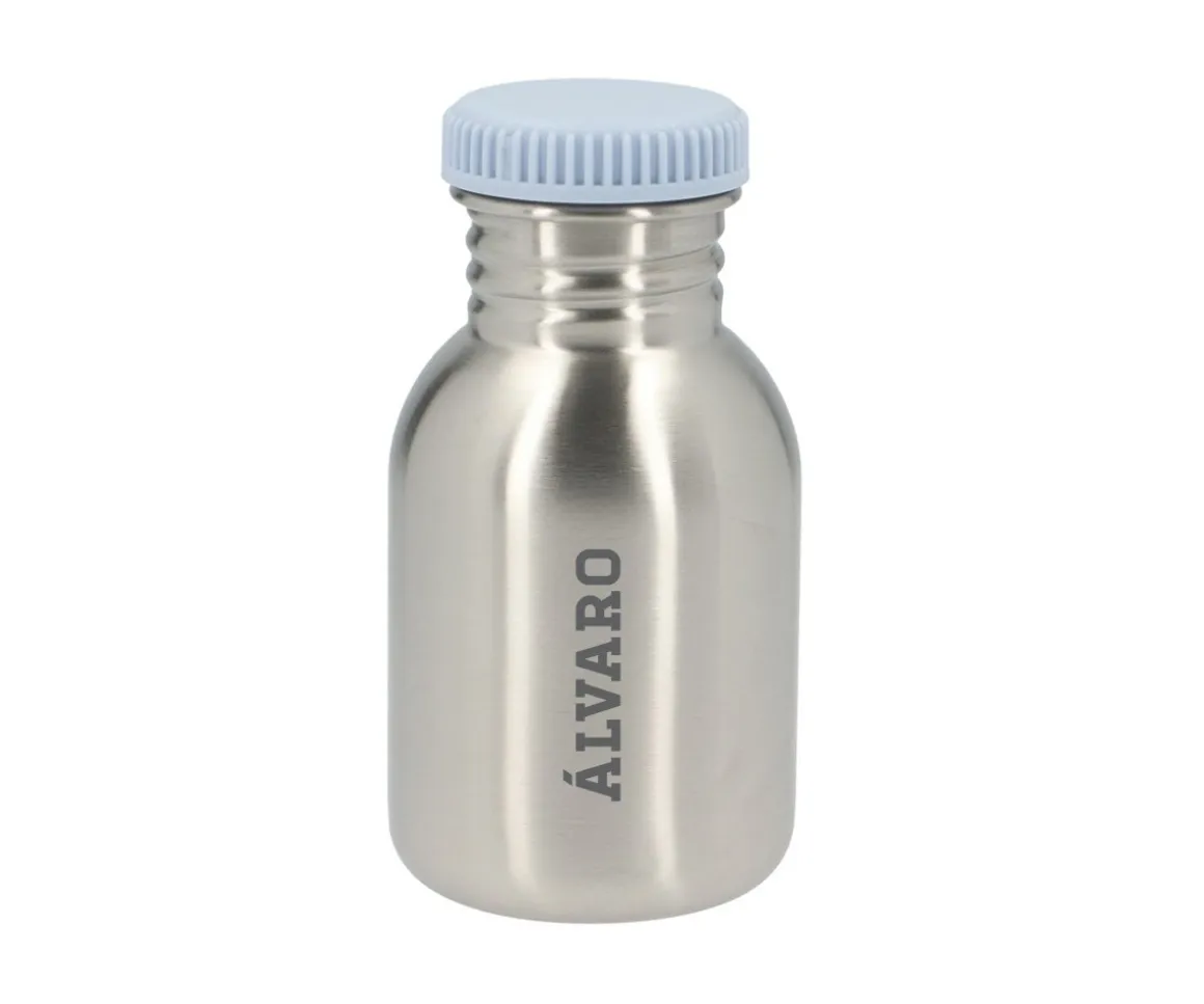 Se puede personalizar la funda con el nombre en mayúsculas en el asa o la botella de acero.