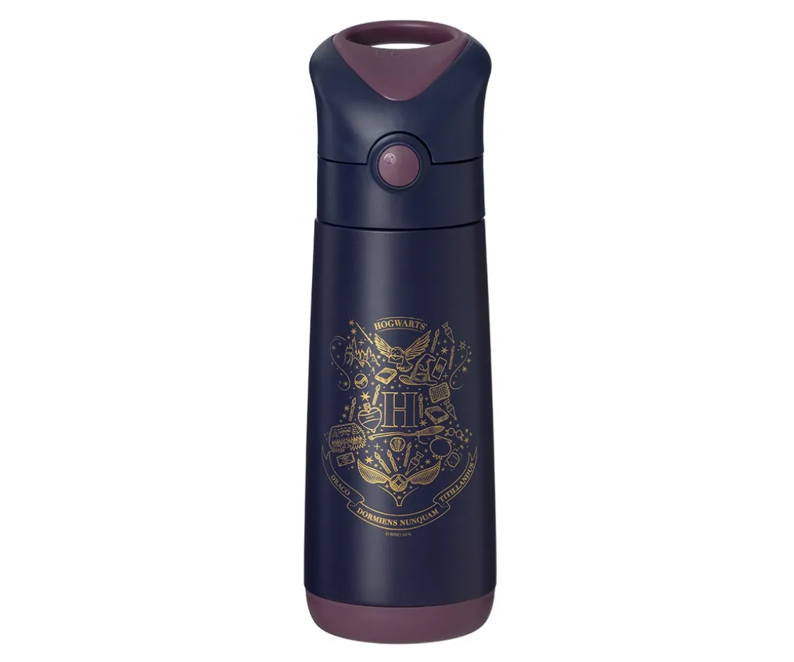 La botella térmica con pajita de edición limitada Harry Potter de B.Box x Warner Bros con capacidad de 500 ml y aislamiento de triple capa, mantiene los líquidos fríos hasta 15 horas y calientes hasta 8 horas. Incluye en el tapón una práctica asa de transporte y un botón de apertura frontal fácil de usar.