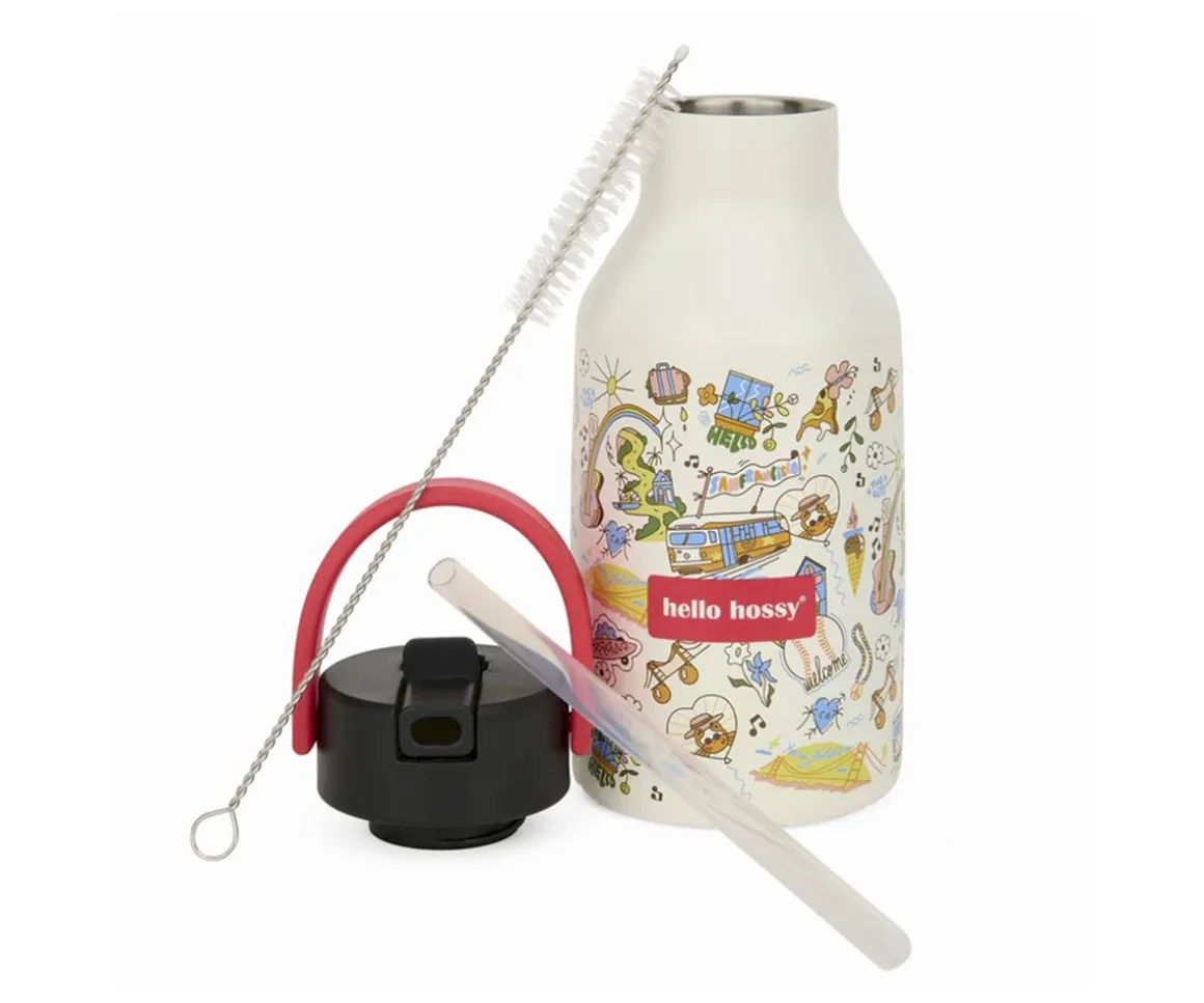 La botella de acero inoxidable de 350 ml de la colección San Francisco de Hello Hossy, es perfecta para los más pequeños. Con un mango fácil de transportar, base antideslizante y boquilla sport, hace que beber sea muy fácil.