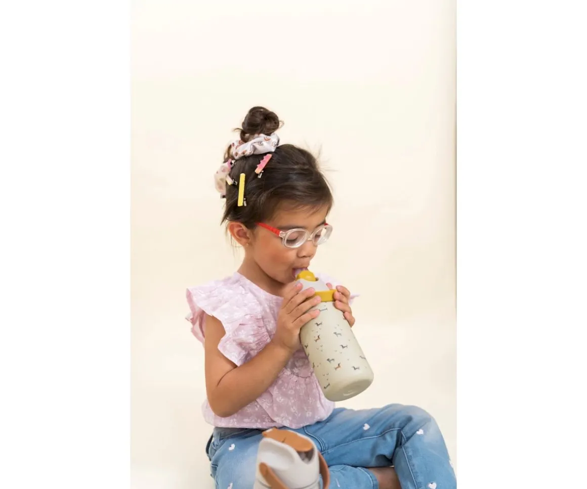 Esta botella de acero inoxidable con capacidad de 420 ml de The Cotton Cloud, es a prueba de fugas cuando está abierta y cerrada, lo que la hace perfecta para que los peques la lleven a todas partes. Cuenta con un asa y una boquilla con pajita de silicona suave, y además, ¡mantiene el agua fría para disfrutar del verano!