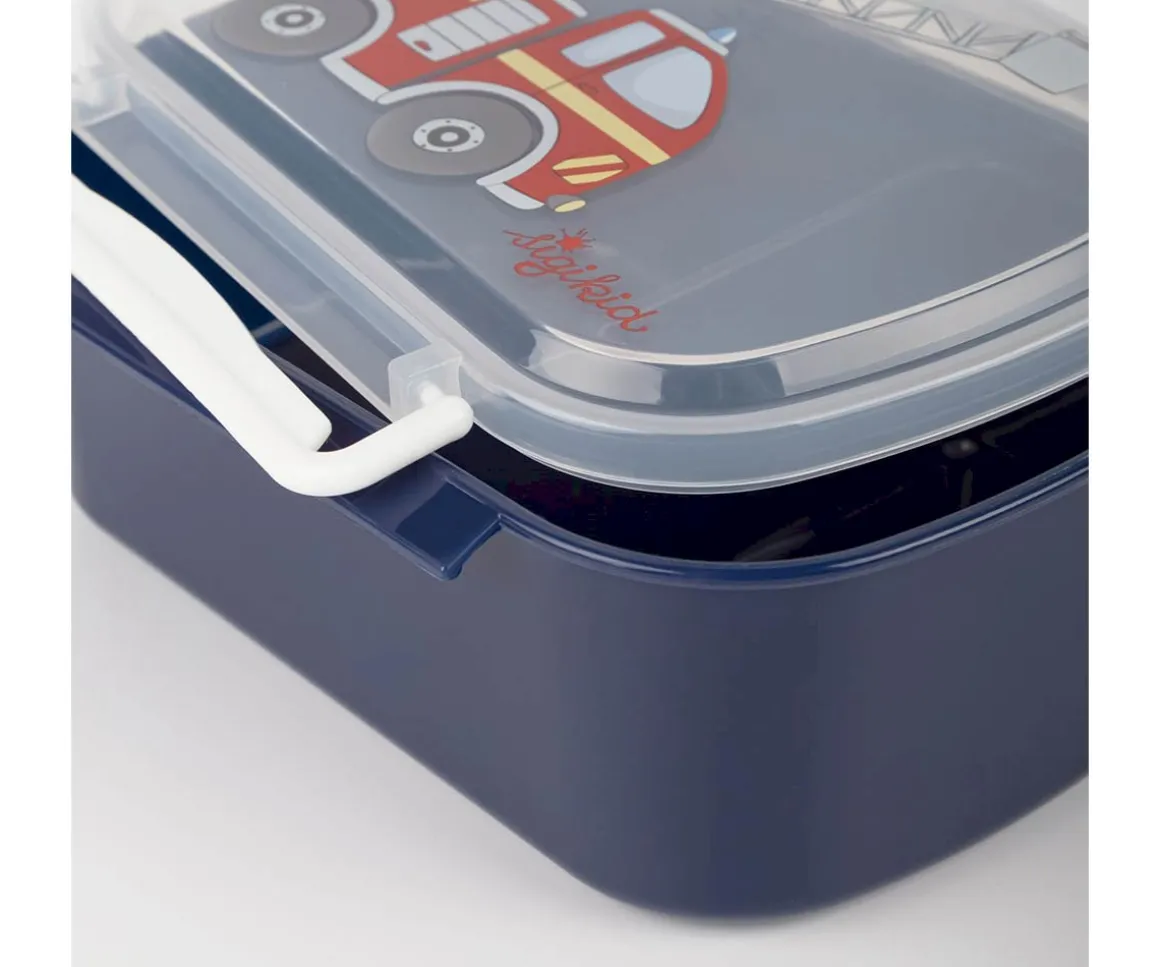 Caja de almuerzo ideal para llevar snacks y bocadillos de los peques. Con altura de 7 cm y compartimento dividido para organizar mejor los alimentos. Fácil de abrir y cerrar con pestañas laterales.