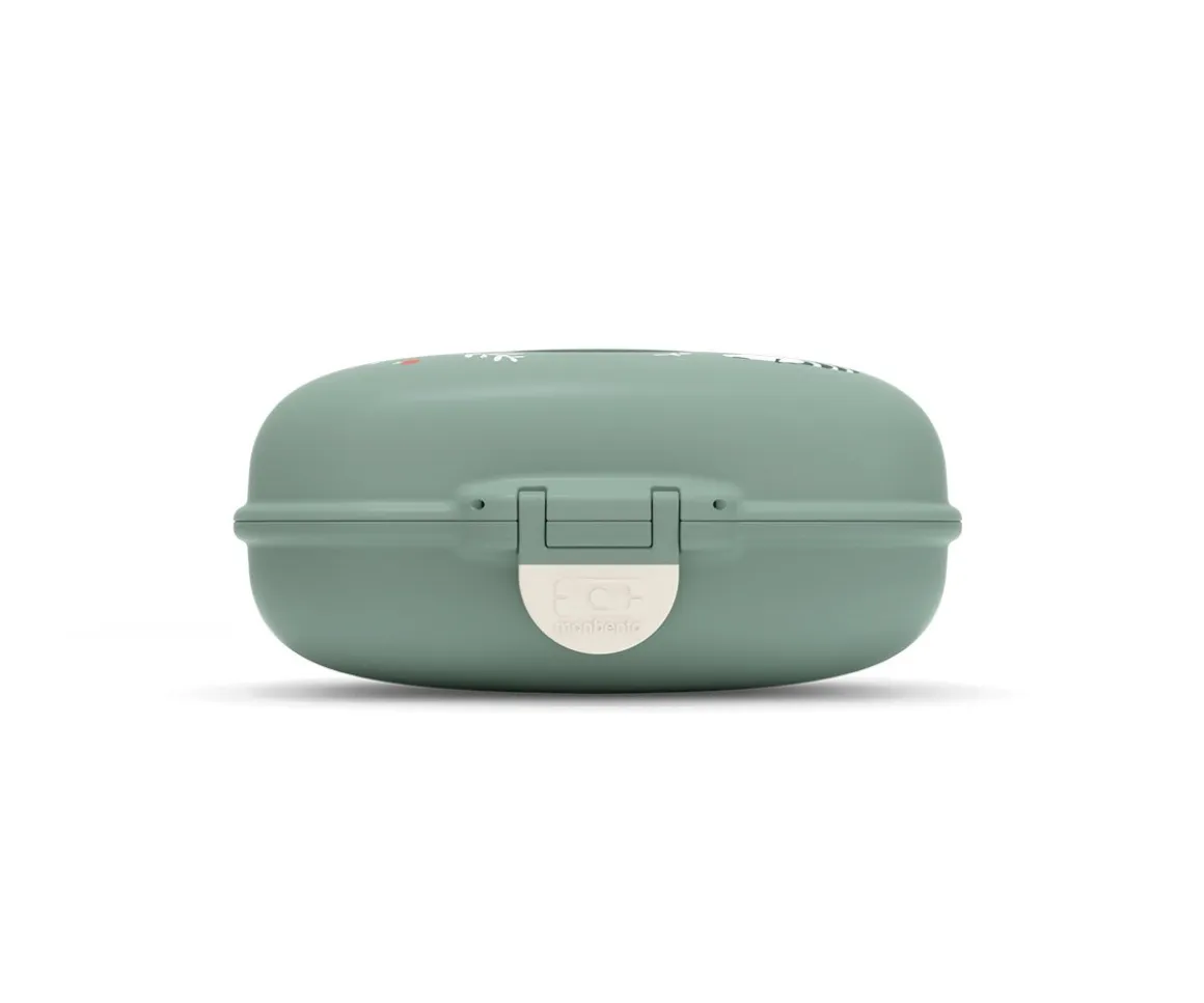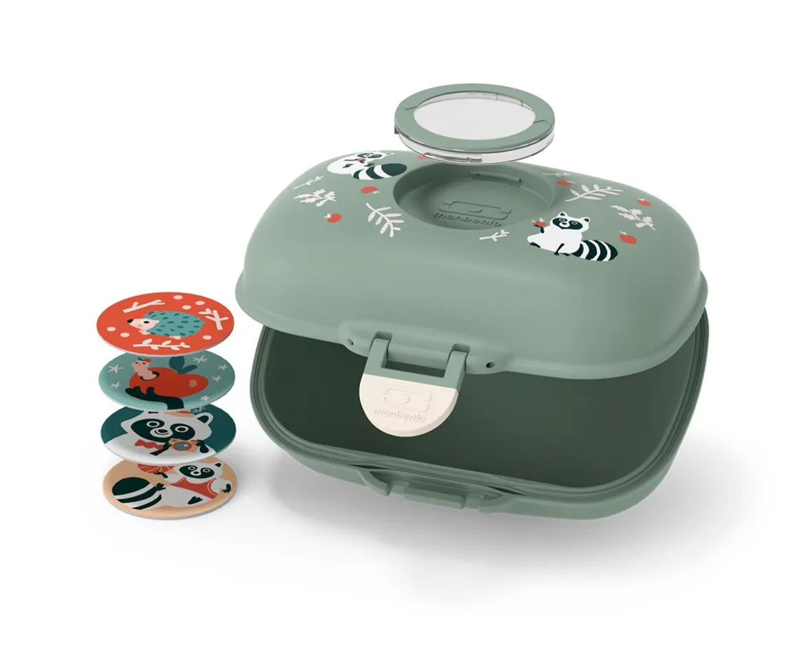 Con un look marcado por su lengüeta de cierre, esta snack box de formas divertidas puede personalizarse gracias a sus pegatinas intercambiables.