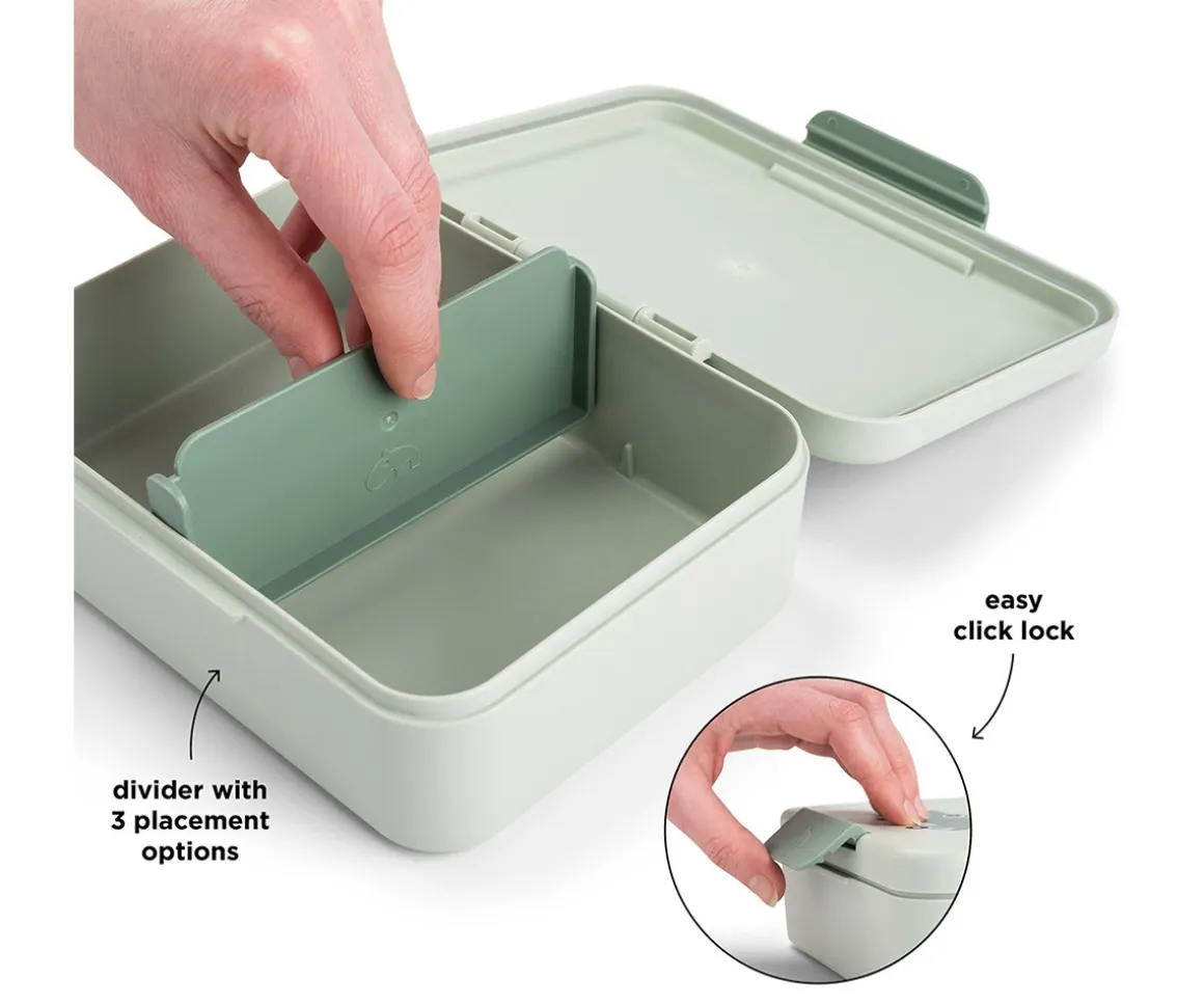 La caja de almuerzo con separador interior y cierre de clip de Done by Deer es perfecta para que los peques lleven su almuerzo al cole o escuela infantil.