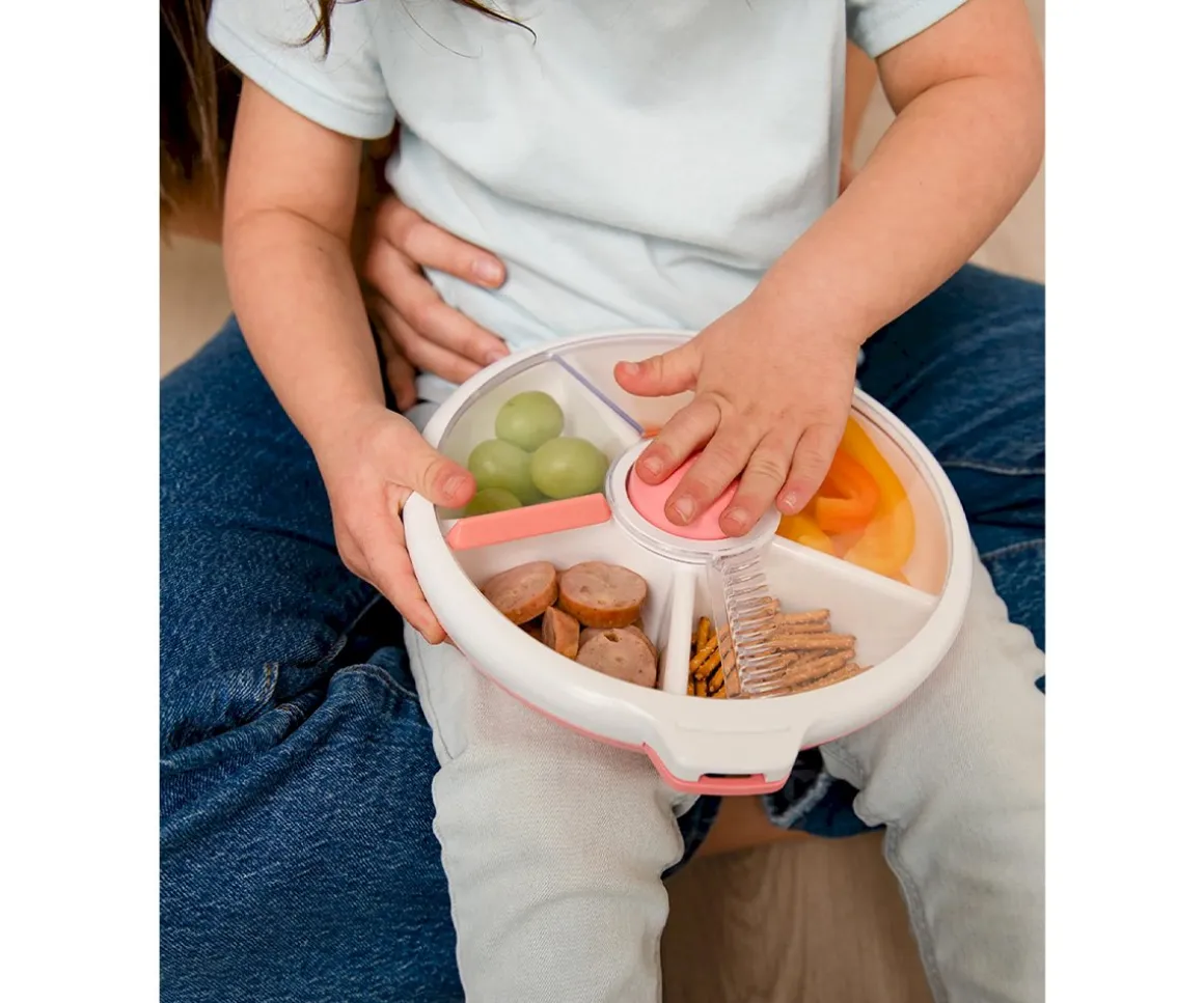 Snack Spinner Slide de la marca GöBe es ideal para llevar una gran variedad de snacks, frutas y verduras, bien organizadas en sus 4 compartimentos.Además incluye una hoja de pegatinas para que puedas personalizarla con el nombre de tu peque.