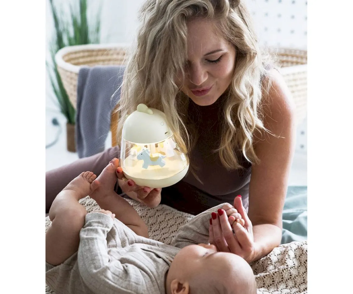 Un original artículo 2 en 1 de la marca Rabbit & Friends, se trata de una caja de música tipo carrusel que emite una suave melodía y calmará a tu peque ofreciendo un ambiente dulce y relajado, y a su vez es también una lámpara nocturna, con diferentes intesidades y colores de luz, que los acompañará a la hora de ir a la cama.