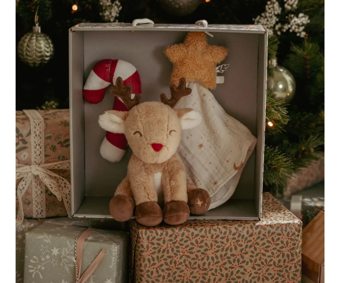 - Incluye: peluche de reno, doudou estrella y bastón caramelo