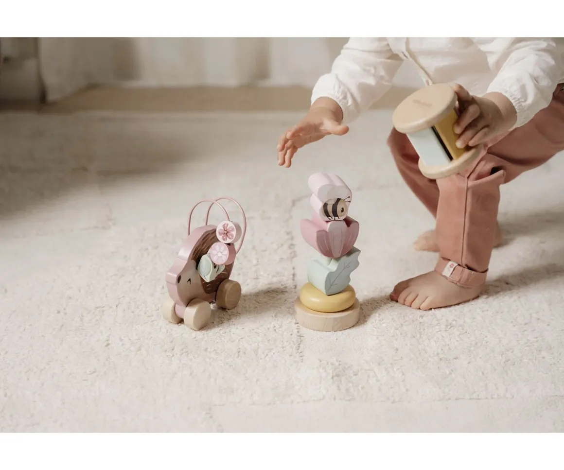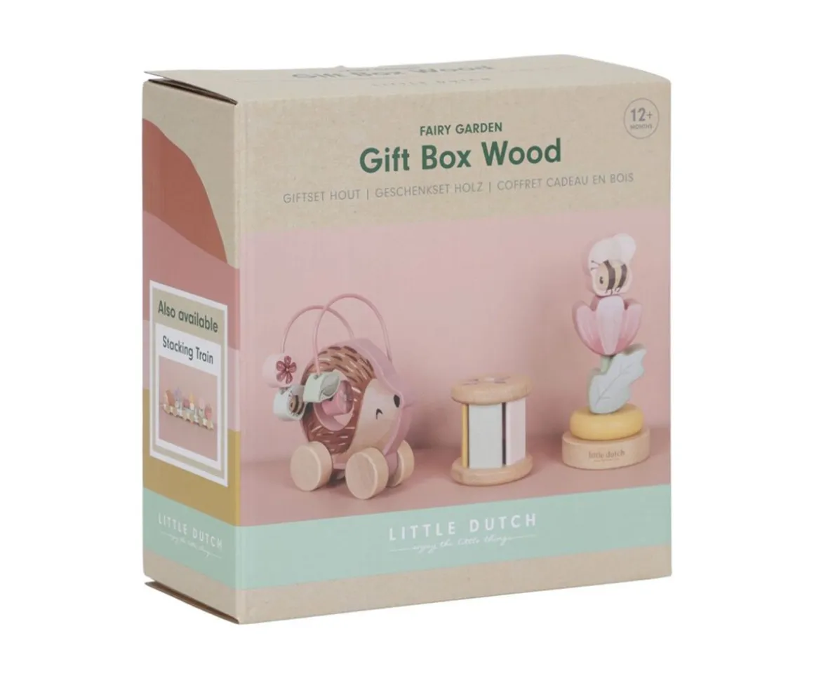 Esta caja de regalo de la colección Fairy Garden de Little Dutch, incluye tres juguetes de madera: un sonajero que en el interior sonará un tintineo, un apilable en forma de flor con abeja y un erizo rodante que incluye un laberinto de cuentas. Esta caja regalo será ideal para los primeros momentos de juego del bebé.