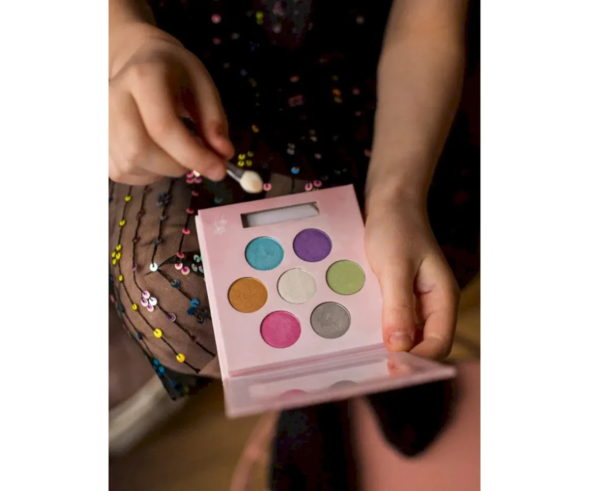 Los colores pastel de la paleta de sombras de ojos son ideales para juegos y primeros maquillajes, con una textura ligera y pigmentación intensa.