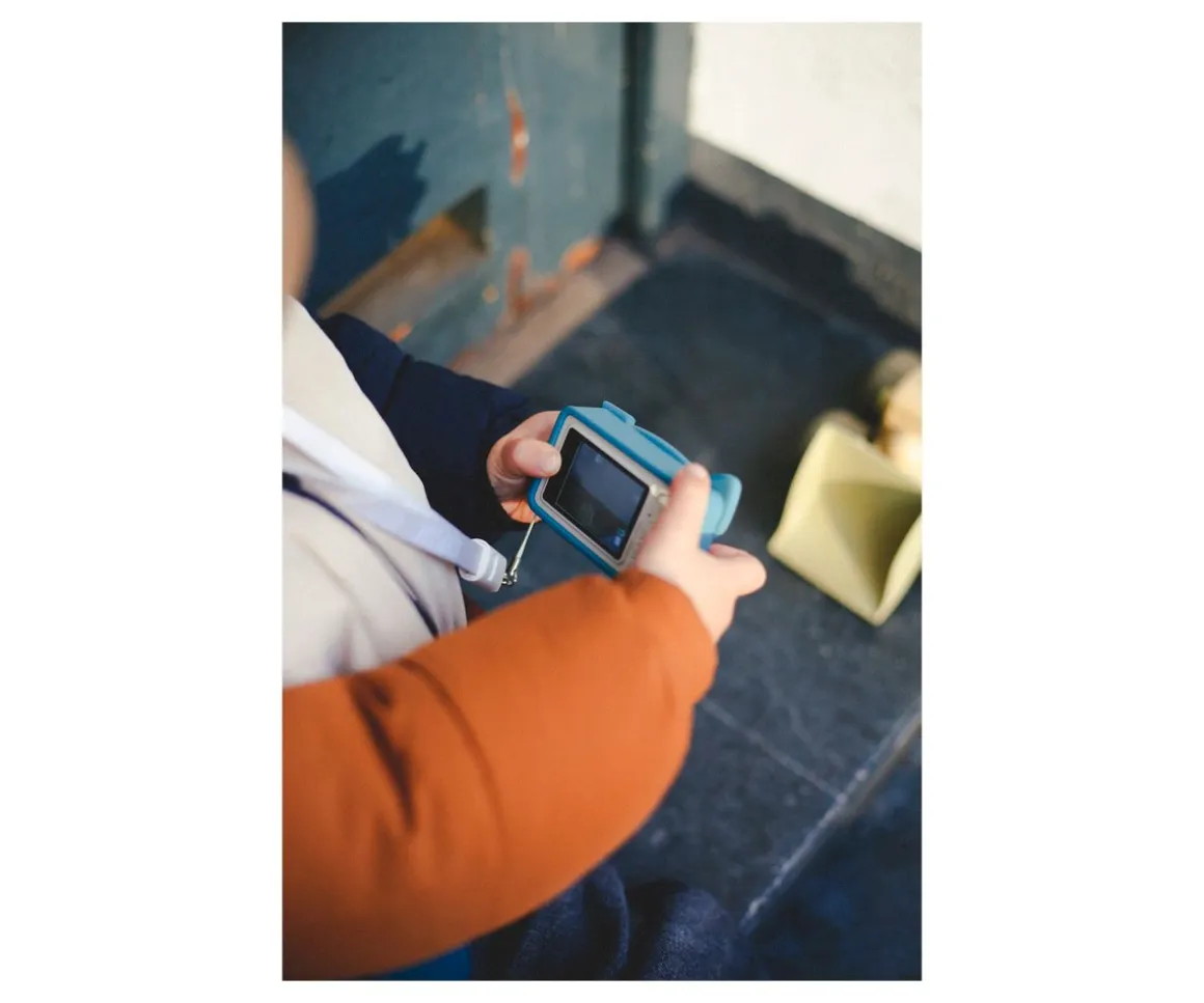 Es fácil de manejar gracias a sus grandes botones y la funda de silicona extraíble la protege contra roturas al mismo tiempo que ofrece un agarre estupendo para que los peques manejen la cámara con facilidad.