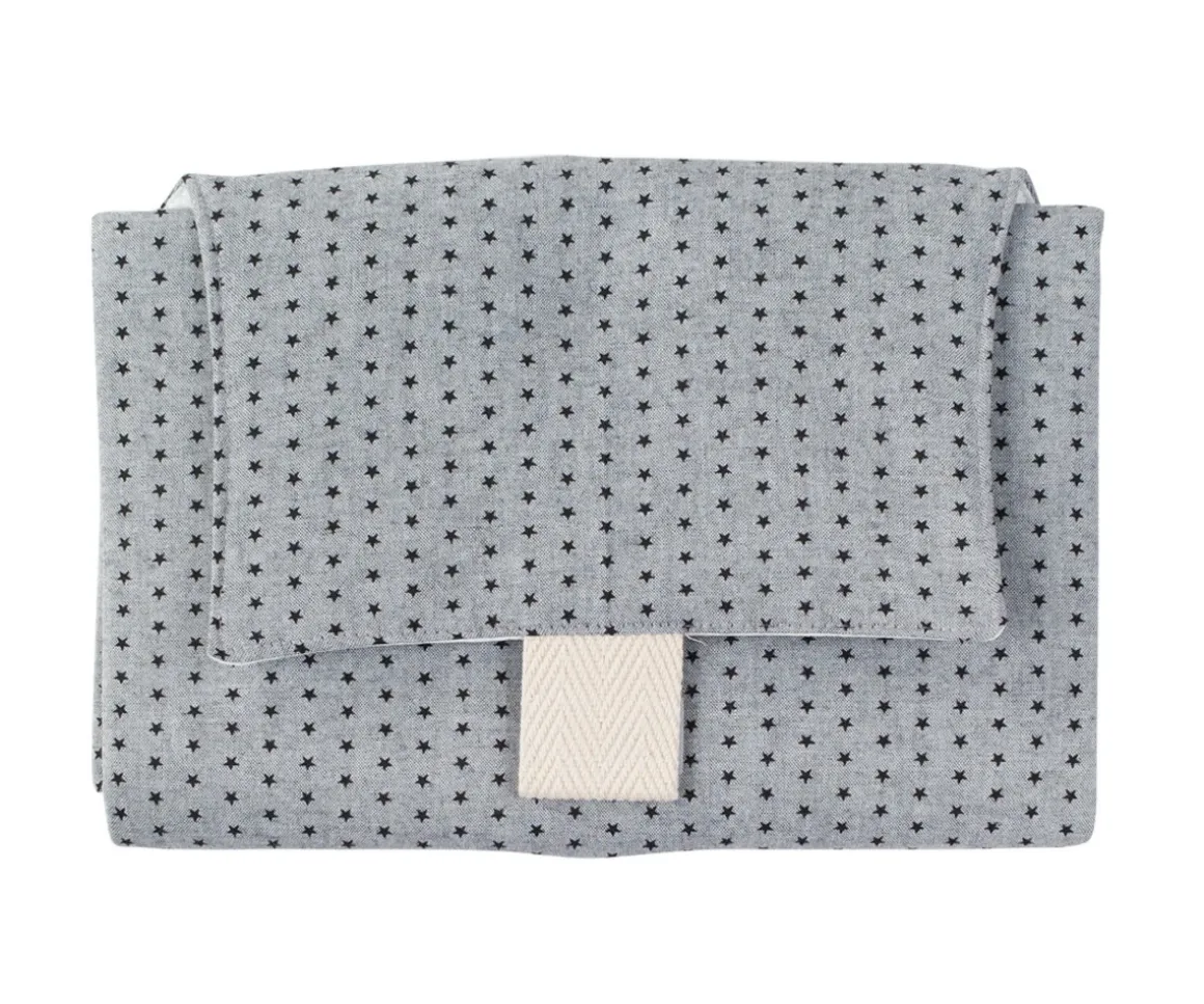 Cambiador de piqué plegable y de reducidas dimensiones para llevarlo dentro del bolso y que puedas cambiar a tu bebé en cualquier lugar.