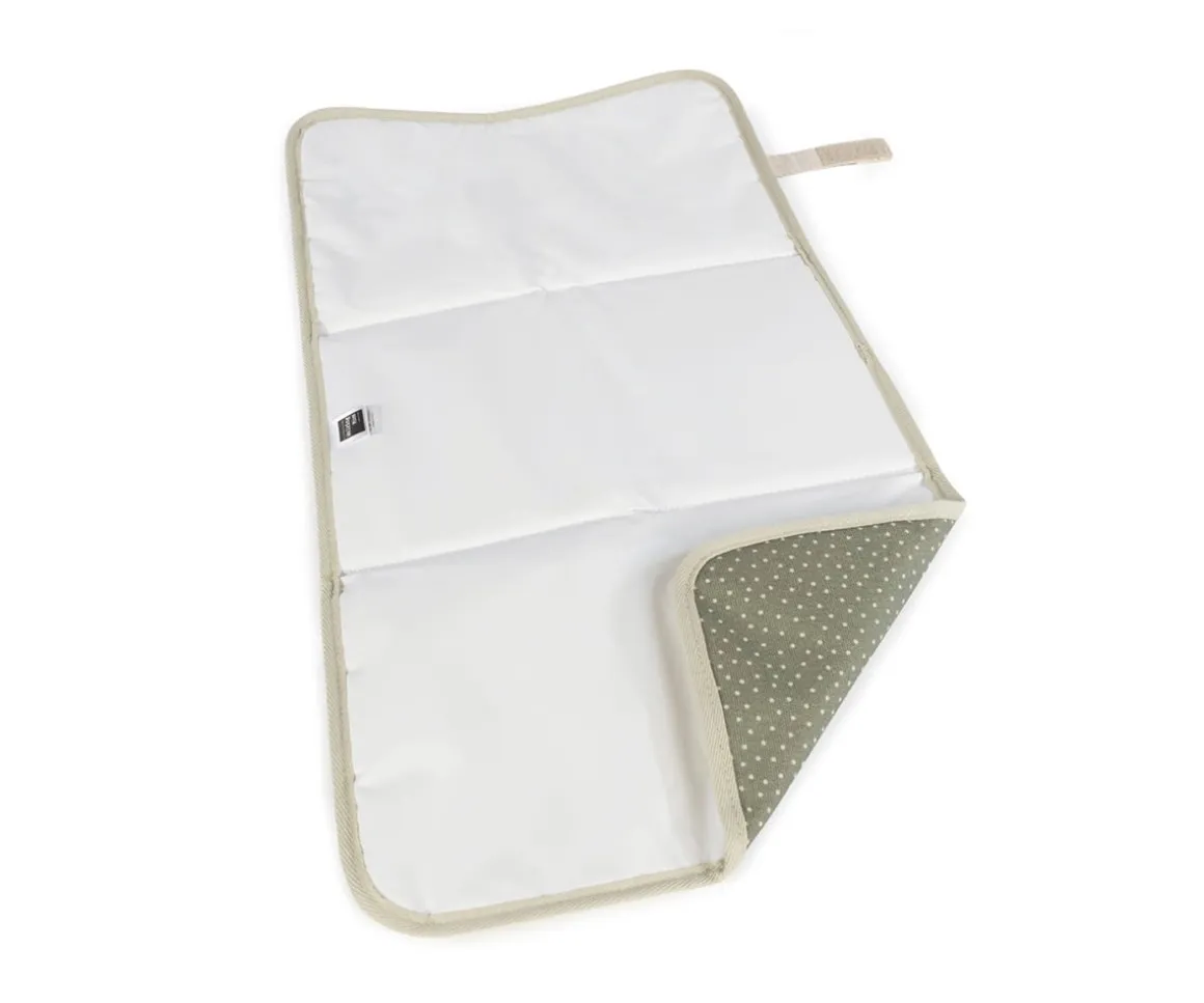 Cambiador con diseño de lunares Poppy Moss de Walking Mum fácil de transportar y de plegar con cierre de velcro para cómodo almacenaje.