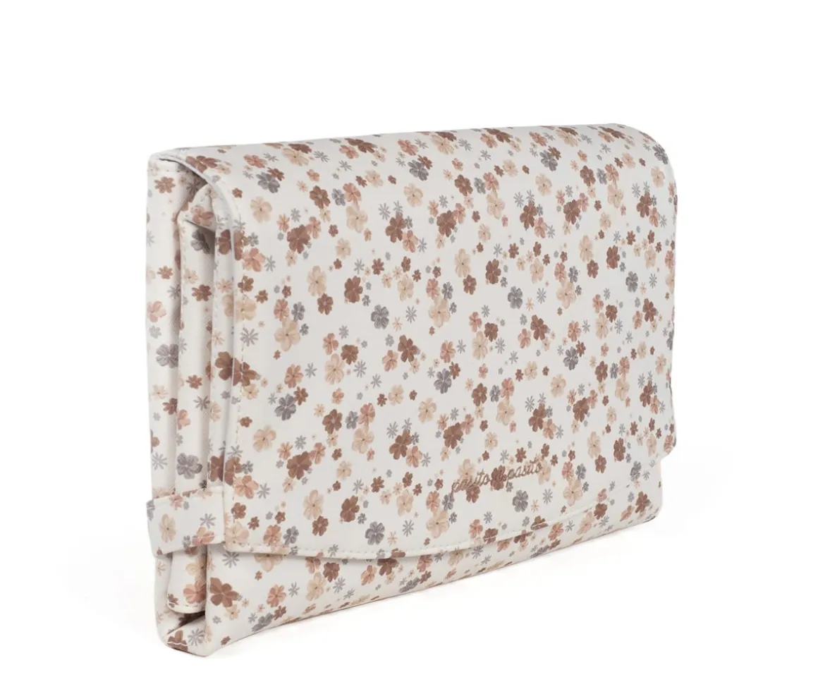 Fabricado con ecopiel resistente pero suave al tacto, este cambiador ofrece un lugar seguro y cómodo para cambiar a tu bebé en cualquier momento y lugar. Su diseño elegante se pliega de forma compacta para facilitar su transporte, con correas de cierre que mantienen todo en su lugar dentro de tu bolsa.