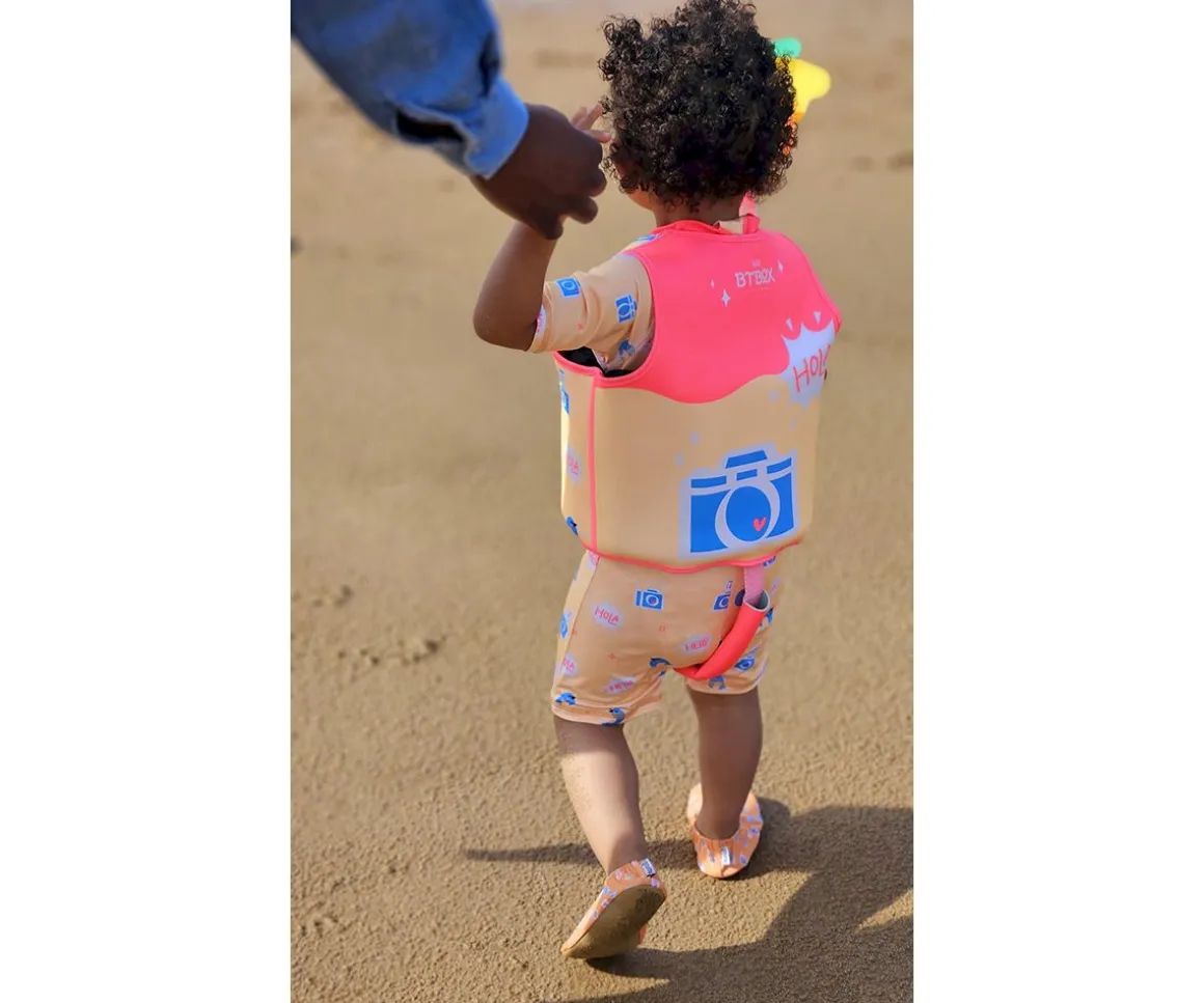 La camiseta bañador Btbox de manga corta, está confeccionada con tela extra suave y elástica, ofreciendo protección solar UPF 50+. Es una opción ideal para combinar con la crema solar y proteger la piel de los niños durante el verano.