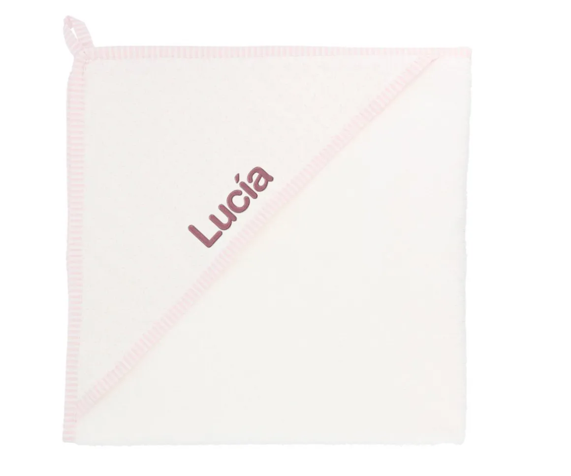Esta capa de baño cuenta con una capucha que podrás personalizar con el nombre de tu bebé para hacerla única y especial. Se confecciona en rizo americano muy suave diseñada especialmente para Tutete.