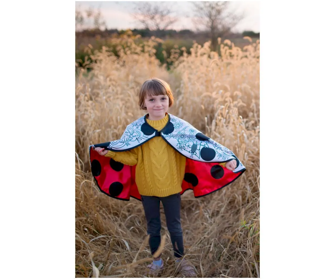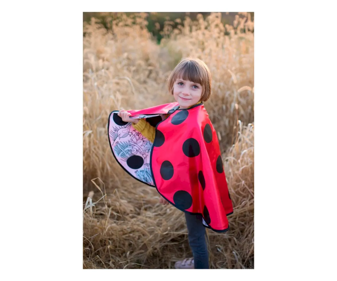 Los peques crearán su propio mundo de fantasía con esta capa Lady Bug que incluye 4 colores para decorar las alas de uno de sus lados.