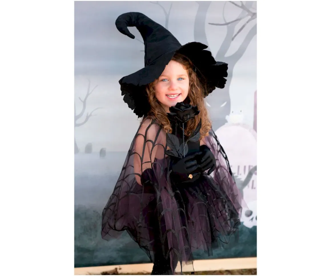 Serás la brujita más adorable con este conjunto de capa y tutú de Great Pretenders. La falda de tutú negra tiene una superposición de estampado de telaraña con cintura elástica y la capa está hecha de tela de malla negra con detalles de telaraña que se sujeta al cuello con cierre de velcro.