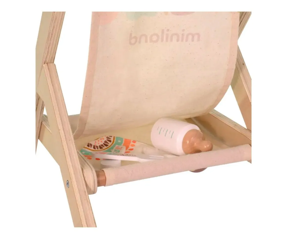 Esta original sillita de paseo para muñecas de madera será estupenda para llevar a tus muñecos a todas partes. Además podrás tiene una bandejita de tela donde podrás llevar el chupete, biberón o el babero de tu muñeco.