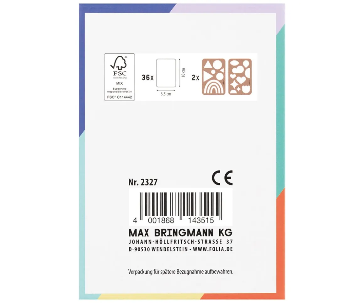 ¡Desata la creatividad con las cartas en blanco Folia! Este set incluye 36 cartas en blanco, ideales para crear tus propios juegos, manualidades o proyectos artísticos. Además, incluye 2 plantillas de kraft para personalizar las cartas fácilmente. Perfecto para actividades escolares, familiares o proyectos DIY.