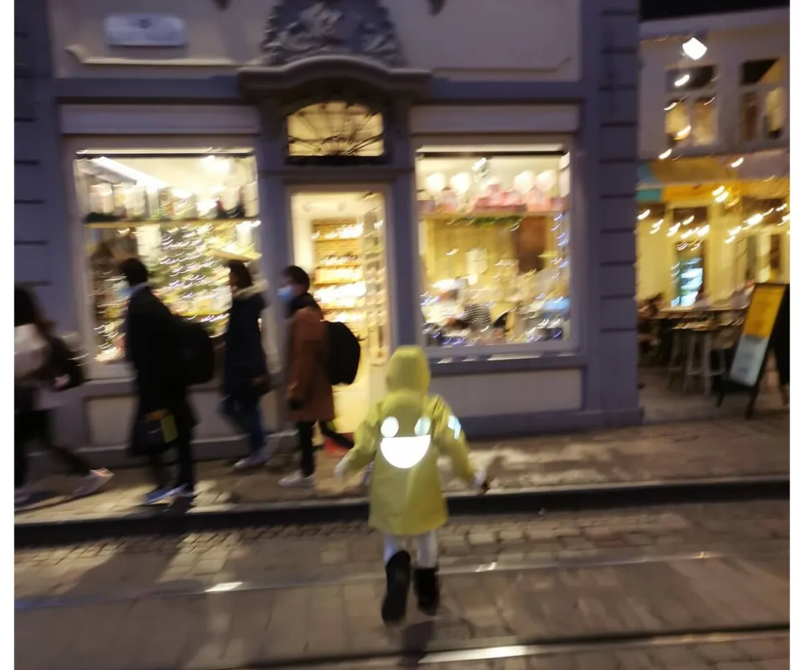 Su innovador estampado reflectante 360º, que se ilumina cuando recibe luz, aporta una capa extra de seguridad mientras los peques corren, cruzan la calle o van en bicicleta. ¡Los divertidos “happy faces” que brillan en la oscuridad la convierten en una prenda mágica y súper original!