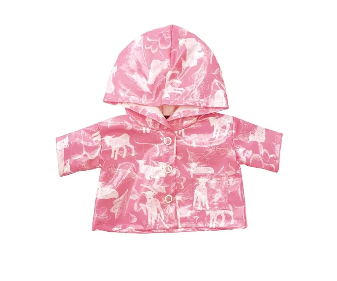 Chubasquero de algodón recubierto con dibujos de ovejitas para muñecas y bebés de 28 cm.